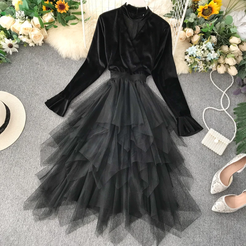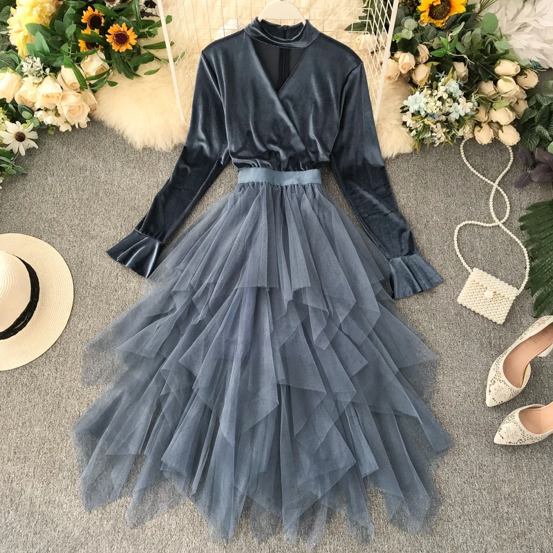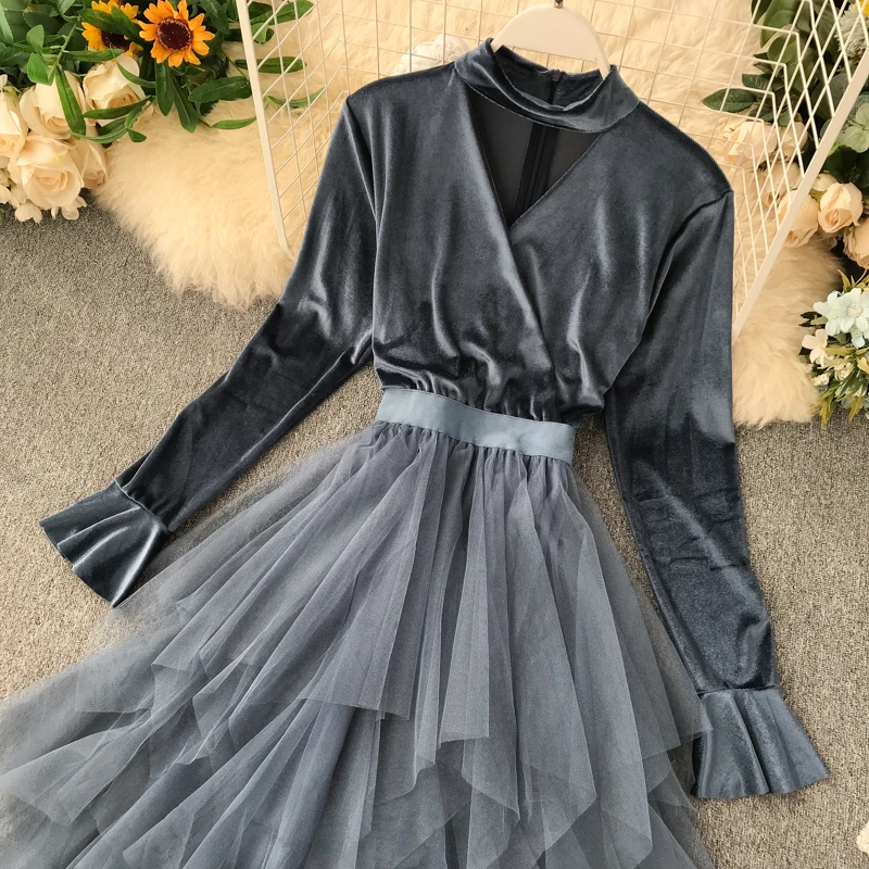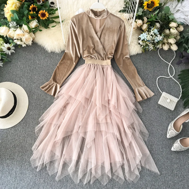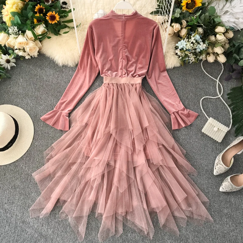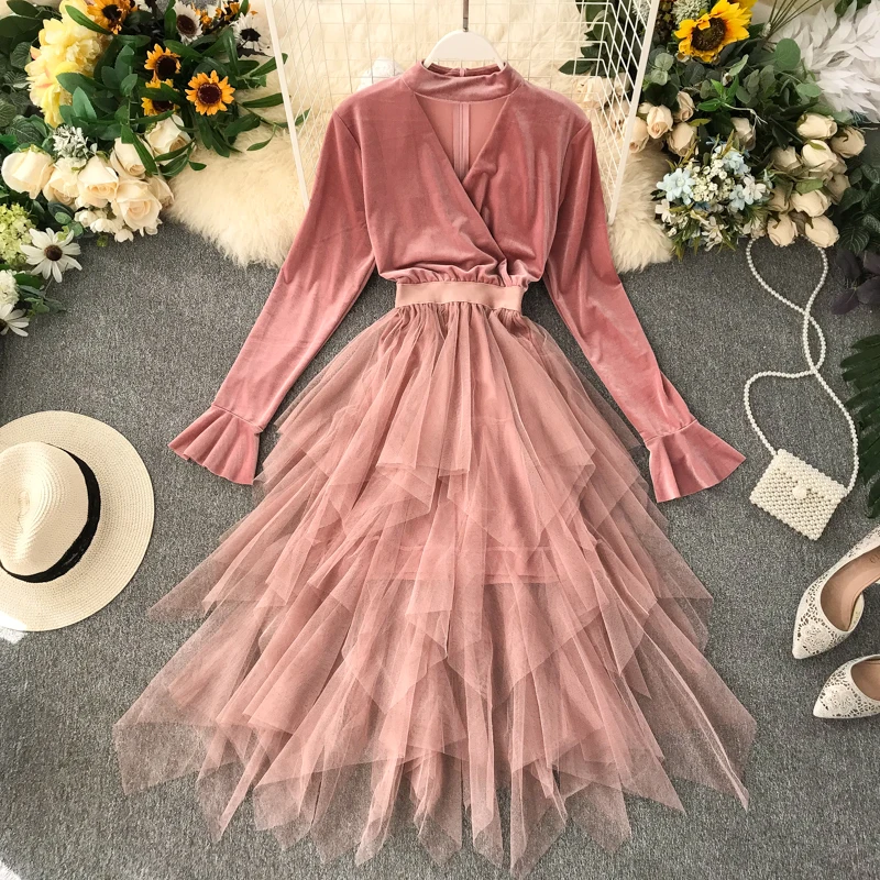 YuooMuoo, хорошее качество, удобное романтичное женское розовое вечернее платье, сезон осень-зима 2019, длинное бархатное платье с V-образным вырезом и асимметричным кружевом