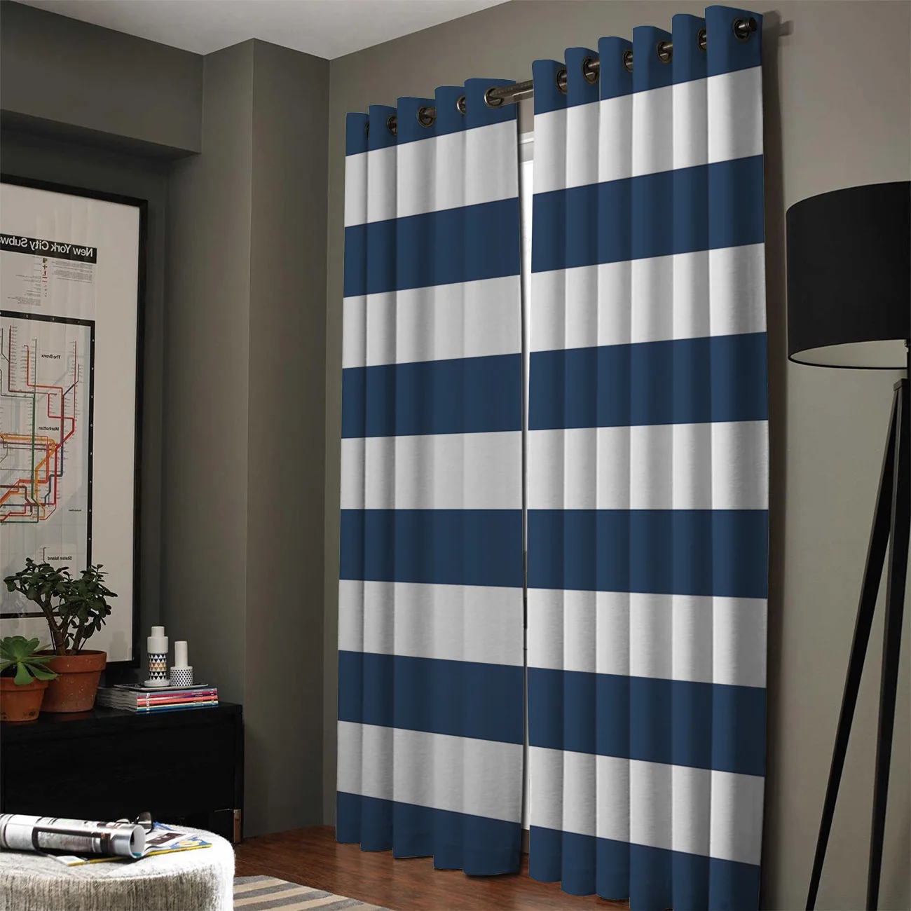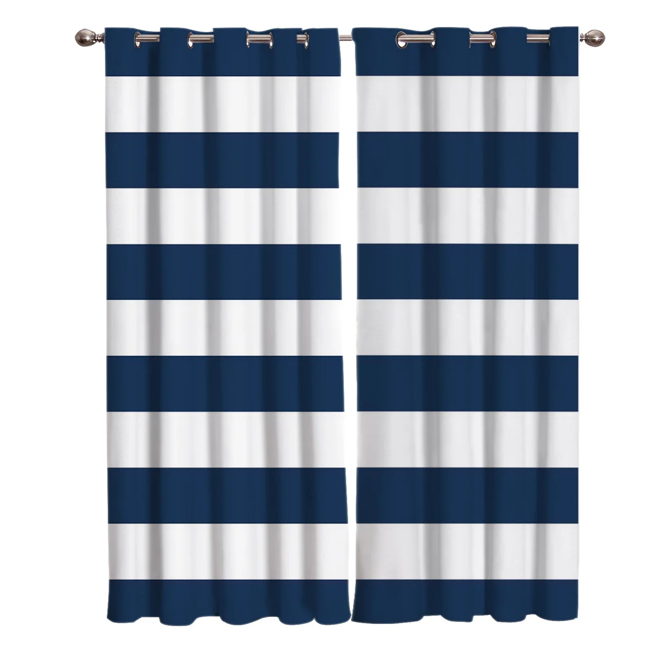 Полосатые сине-белые оконные шторы, занавески для комнаты, большие оконные шторы, оконные шторы, шторы для ванной