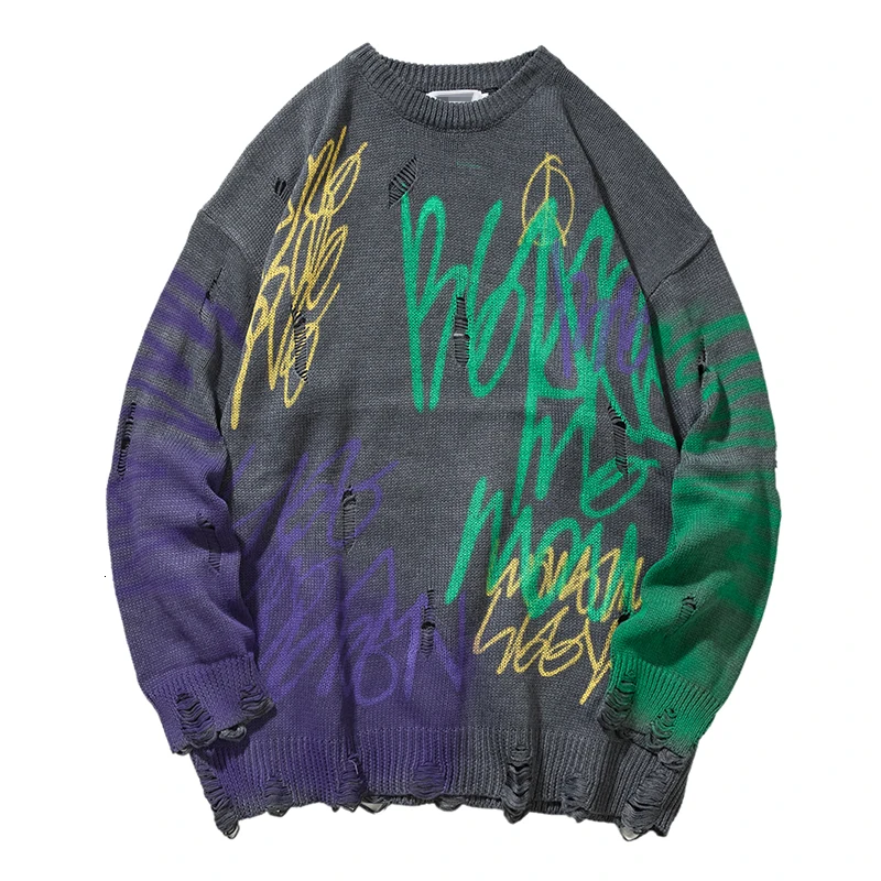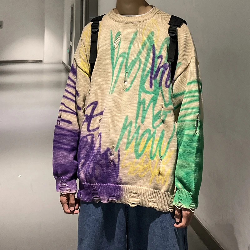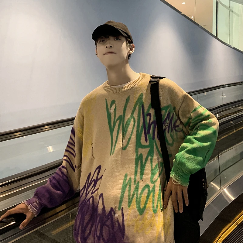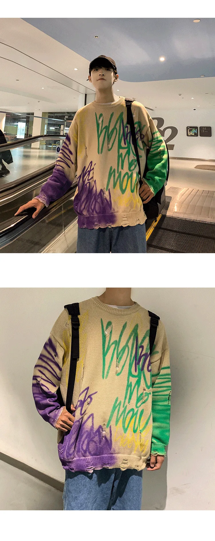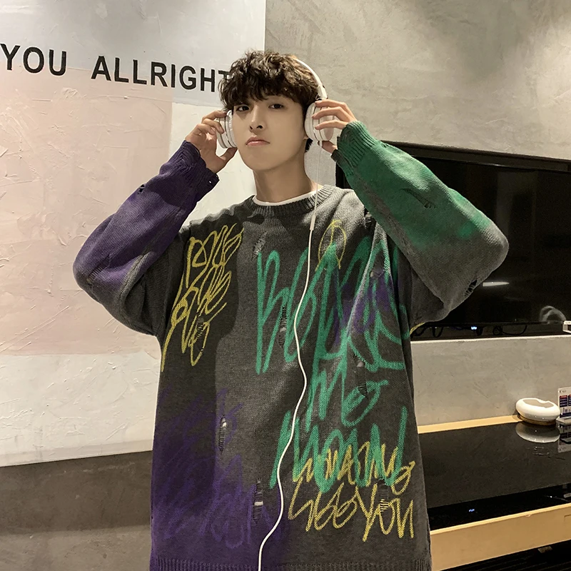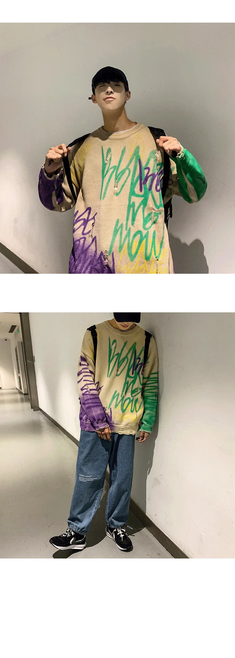 2019 зимние мужские каракули пальто с принтом шерстяной кашемир свитера Повседневный пуловер отверстия Длинный Рукав Круглый Вырез Вязание knitting