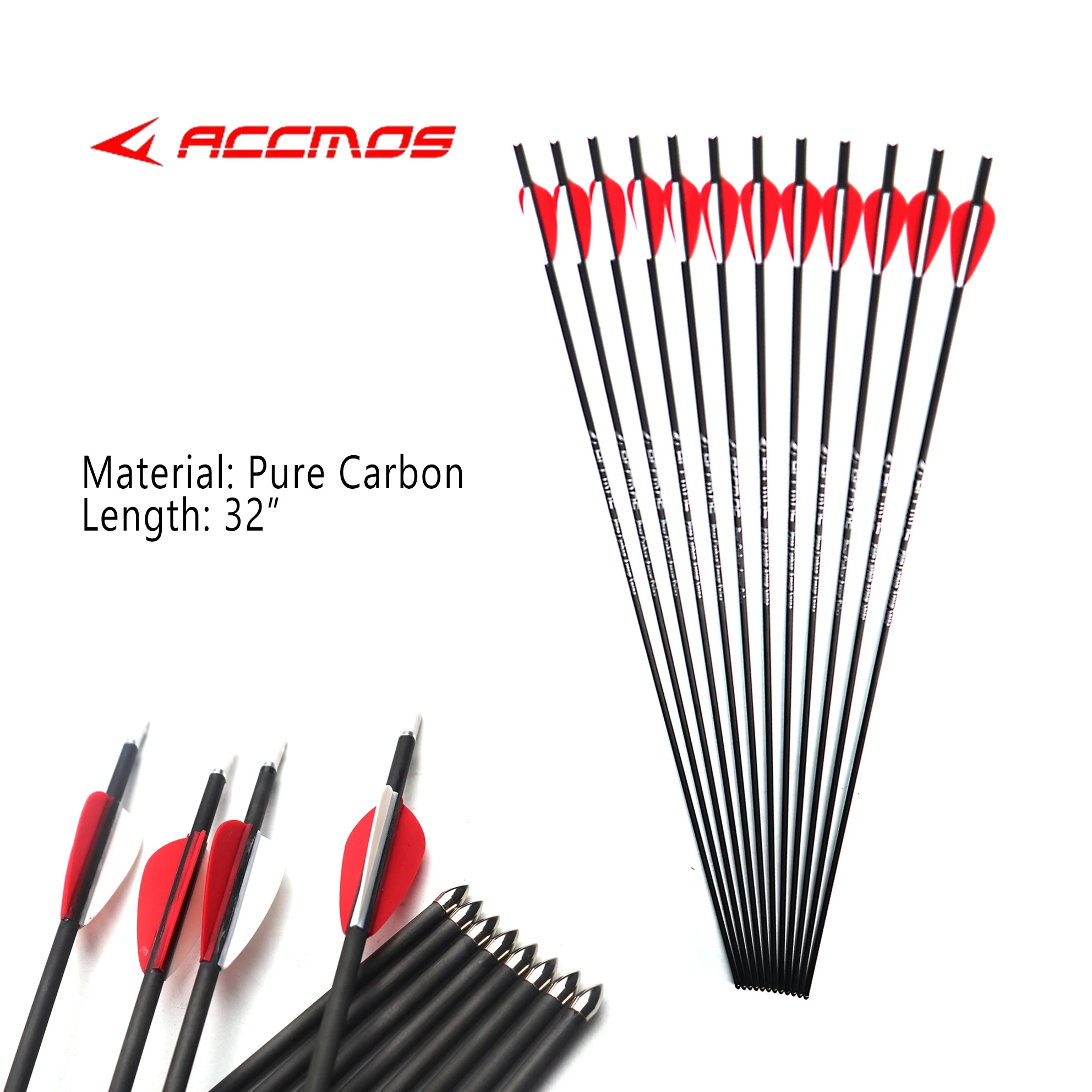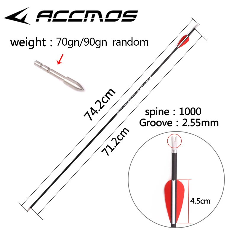 Стрелы из чистого карбона для стрельбы из лука 600, 700, 800, 900, 1000, 1100, 1300, 1500, 1800, ID, 4,2 мм, 12 шт.