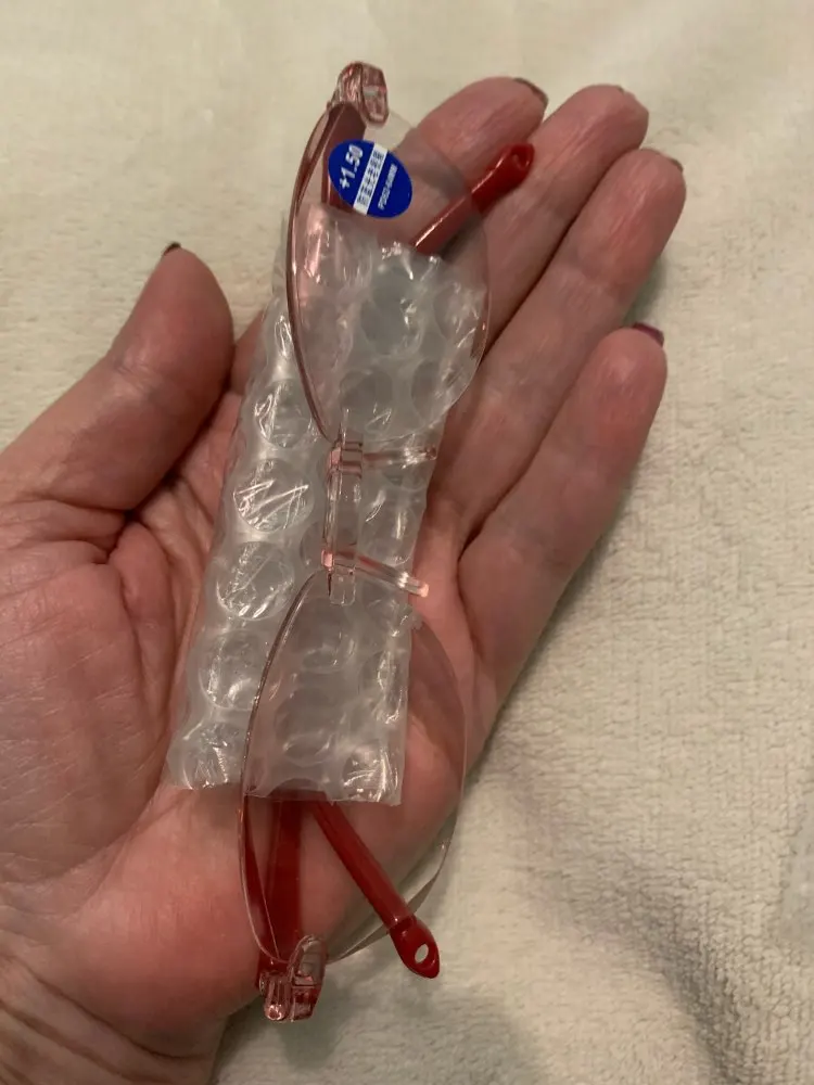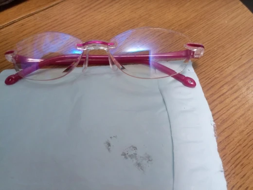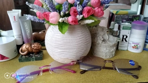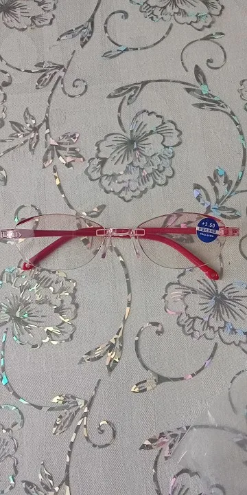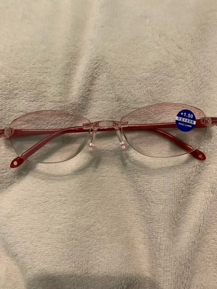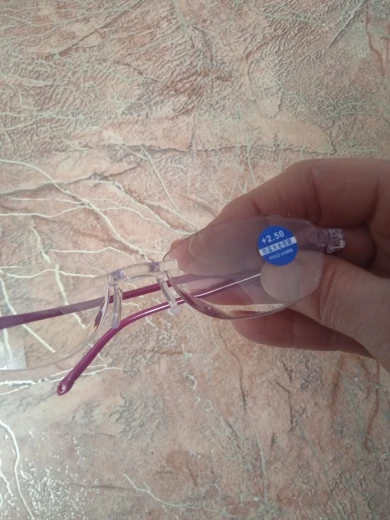 Очень легкие, нежные очки! Диоптрии как и заказывала. Дужки тонкие, не жмут ни на голову, ни на уши. Розовый цвет освежает лицо. Оправы нет, только стёкла, это тоже открывает лицо, не утяжеляет внешний вид. Хорошо держатся на переносице. Товар хороший. Всем рекомендую! Спасибо продавцу за качественный товар, все пришло целое, повреждений нет!