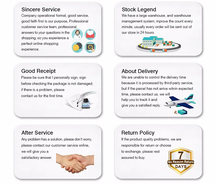 Если ваш заказ был успешно доставлен и вы удовлетворены товаром, пожалуйста, нажмите "подтвердить заказ получен" и оставьте мне 5 звезд положительные отзывы. Ваши положительные отзывы для меня очень вдохновляют. Мы предоставим вам большую скидку на ваш следующий заказ, если у вас есть какие-либо проблемы, пожалуйста, не стесняйтесь связаться со мной, пожалуйста, не оставляйте плохой отзывы, это не может быть изменено, пожалуйста, свяжитесь с нами, мы постараемся сделать все возможное, чтобы помочь вам, пожалуйста, не беспокойтесь, заранее спасибо.