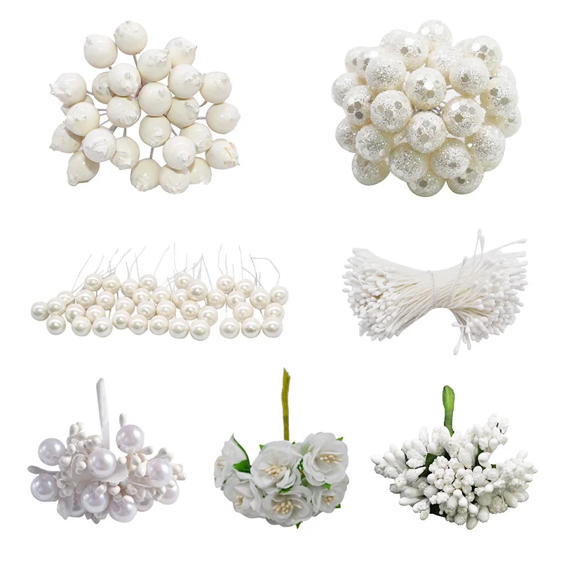 Белые, красные мини-тычинки для цветов, искусственная тычинка фрукт...