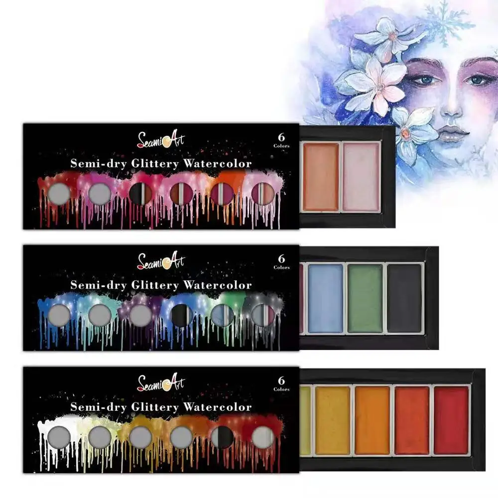 Набор акварельных красок SeamiArt, 6 цветов, классныетеплыеметаллические, акварельные краски в наборе цветов, цветная сковорода пигмент, товары для рукоделия