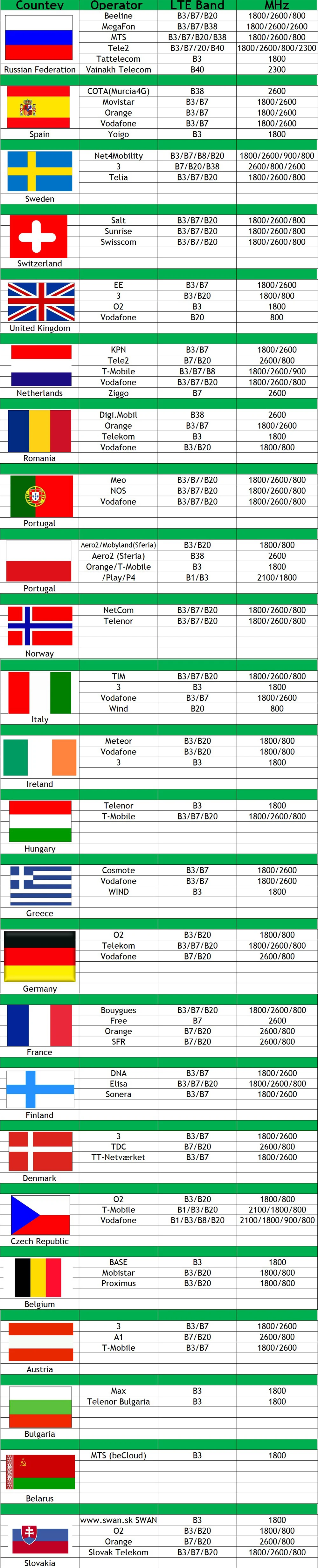 Для операторов и LTE полос, которых нет в списке, пожалуйста, перейдите по ссылке ниже, чтобы задать вопрос