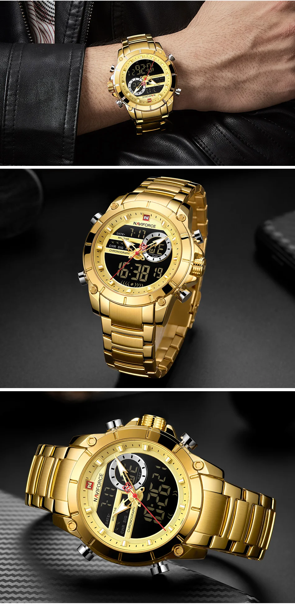 Часы NAVIFORCE Мужские кварцевые, военные, спортивные, полностью стальные