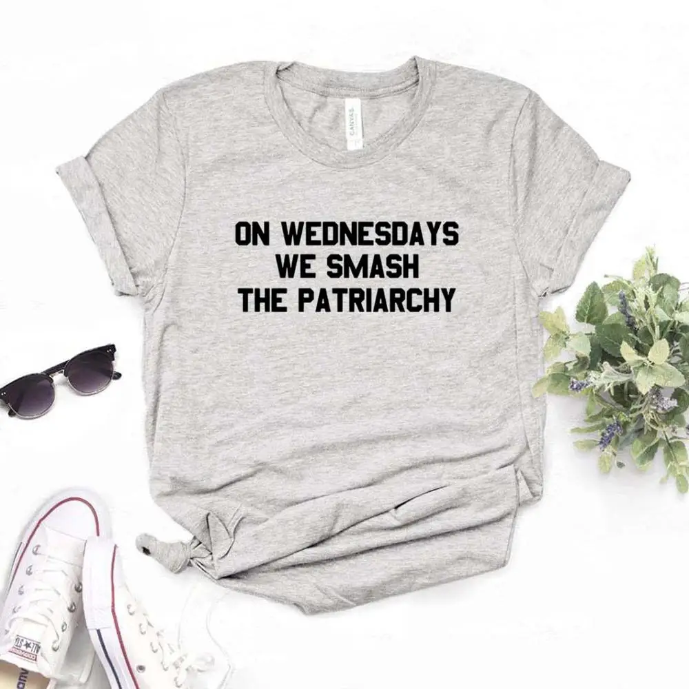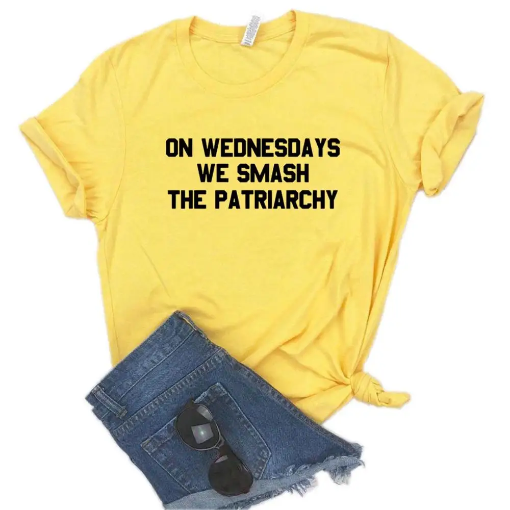 По средам мы Smash патриархат для женщин футболки хлопок повседневное забавная Футболка для леди верхний тройник битник 6 Цвет NA-567