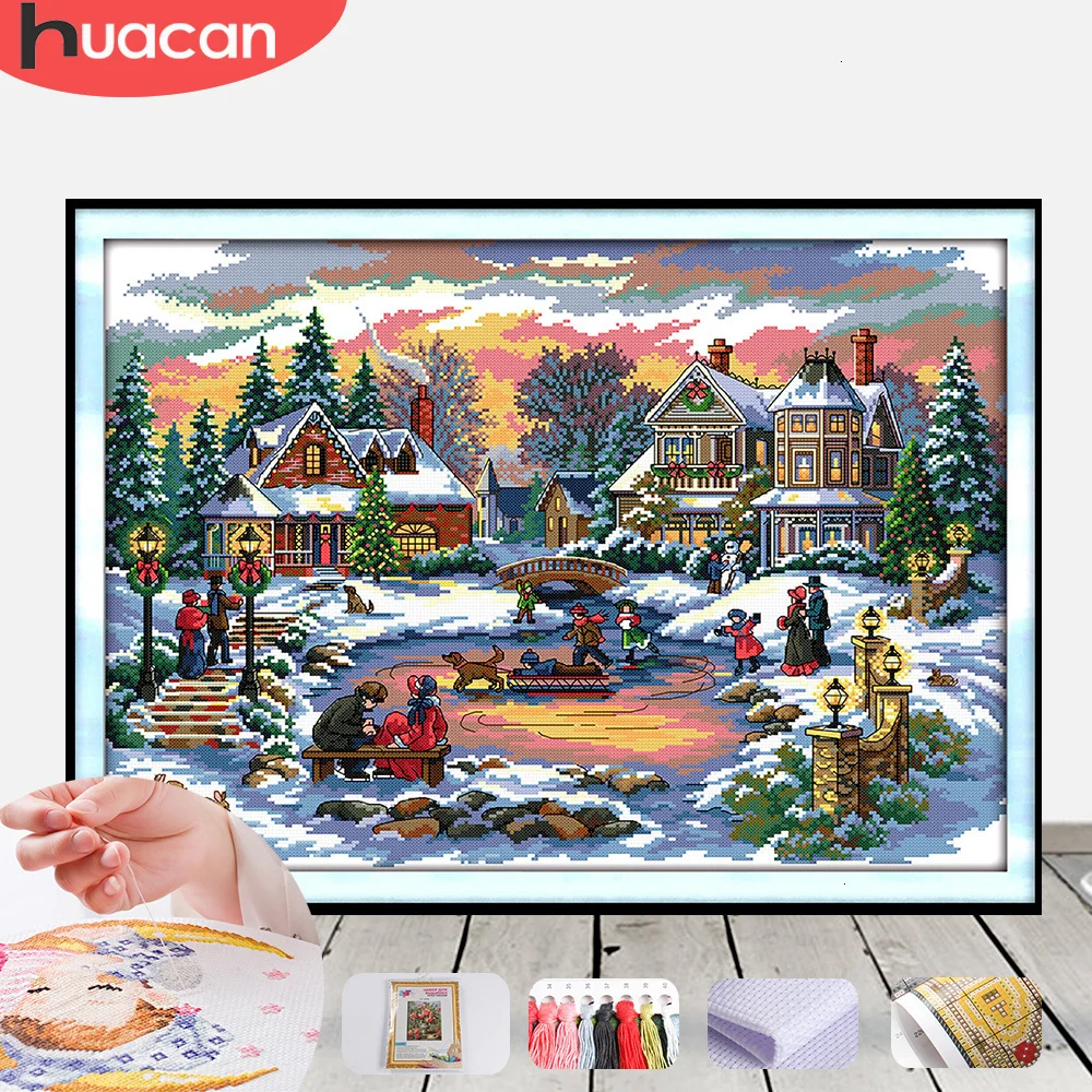 HUACAN зимние наборы для вышивки крестиком Декорации для рукоделия ...