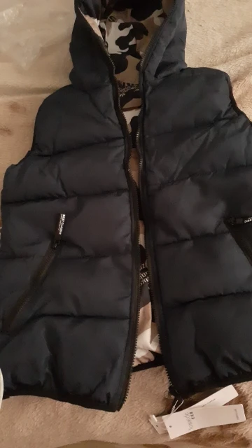 Жилетка хорошая, тёплая, но ни какая не хлопковая, обе стороны - типа болоньи, внутри синтепон, прилично так, смотрится объемной. Внук ростом 145, чуть великовата. Доставка меньше месяца в СПБ