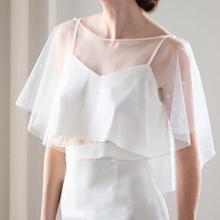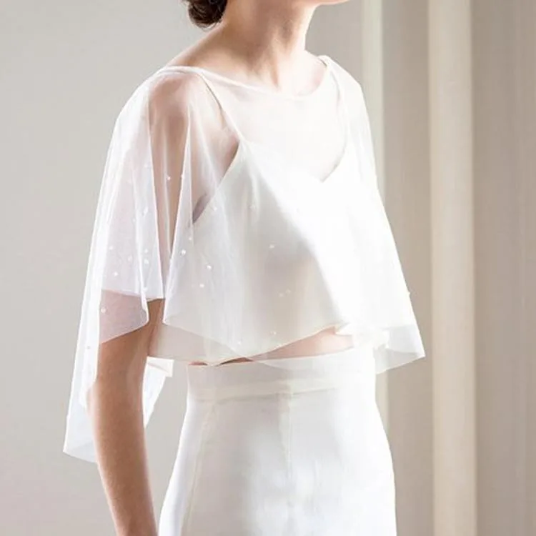 Жемчуг Тюль Свадьба обернуть Короткие выпускного вечера шаль, БОЛЕР...