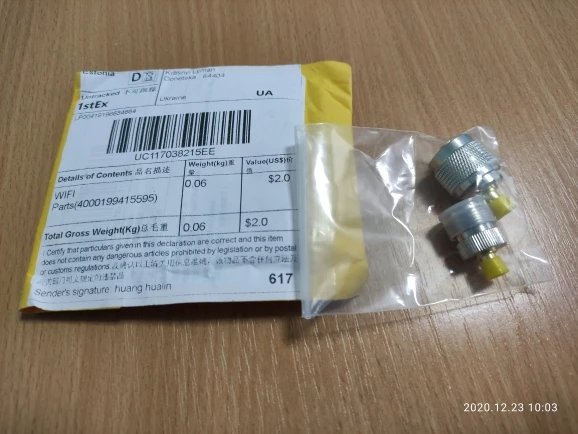 Страна: UA Color: 1Pcs SMA UHF-KK Доставка: Cainiao Super Economy 17.12.2020