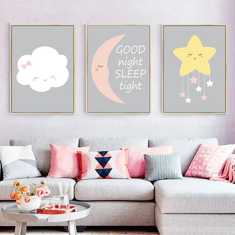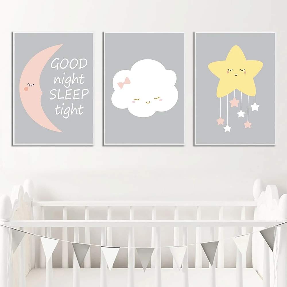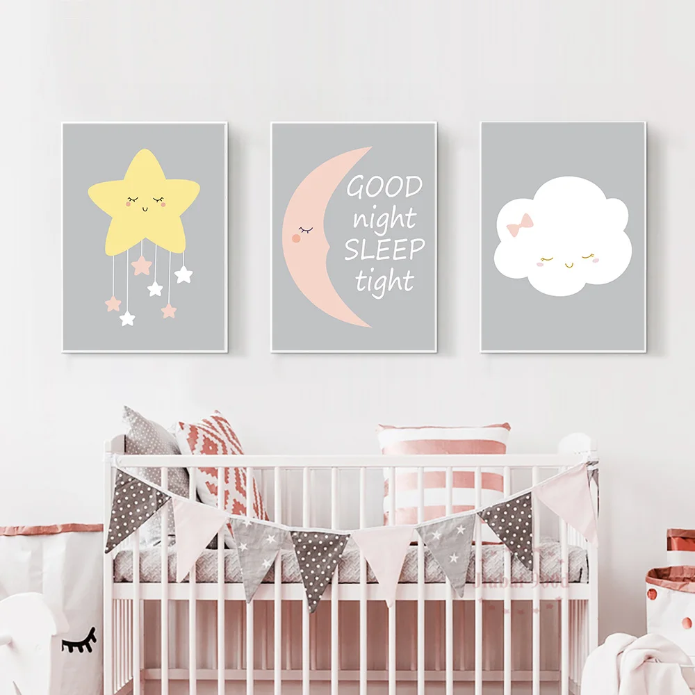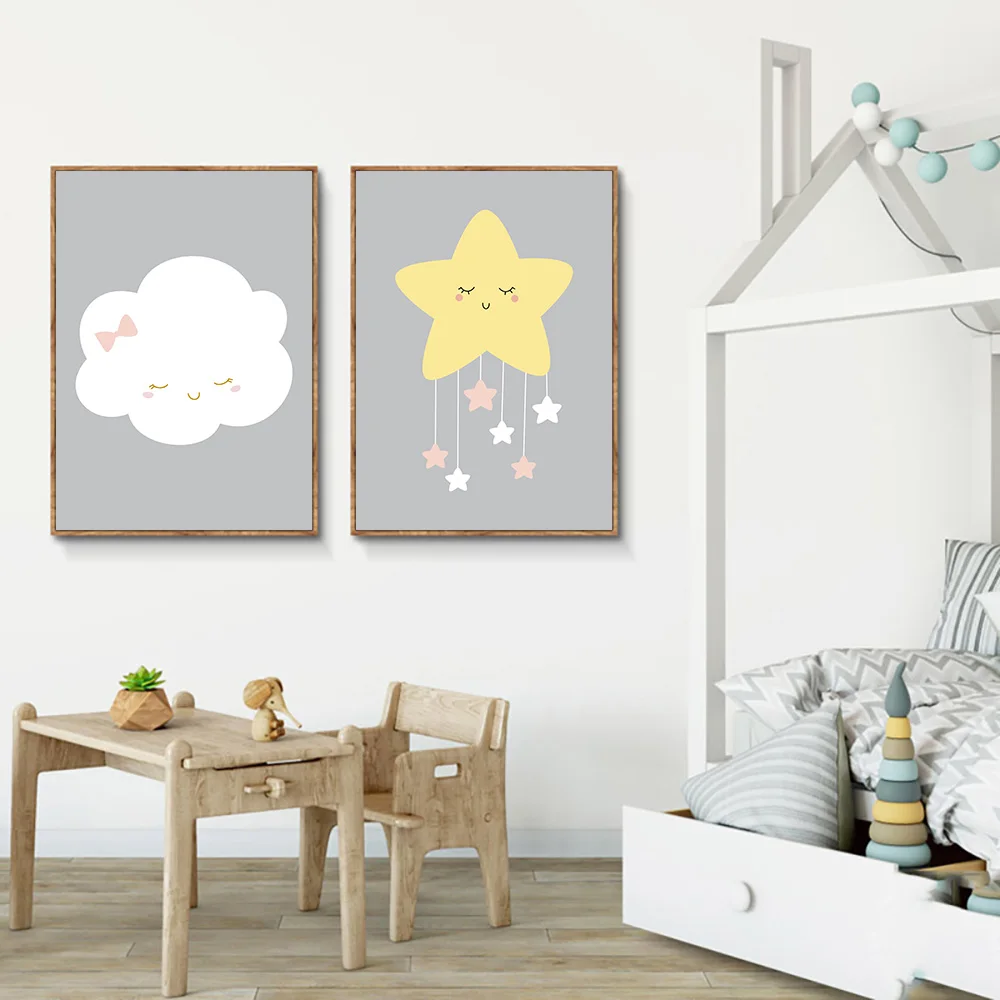Moon Cloud Star живопись на холсте, мультфильмы детская искусственная печать в скандинавском стиле настенный плакат картины для девичьей девочки домашний декор