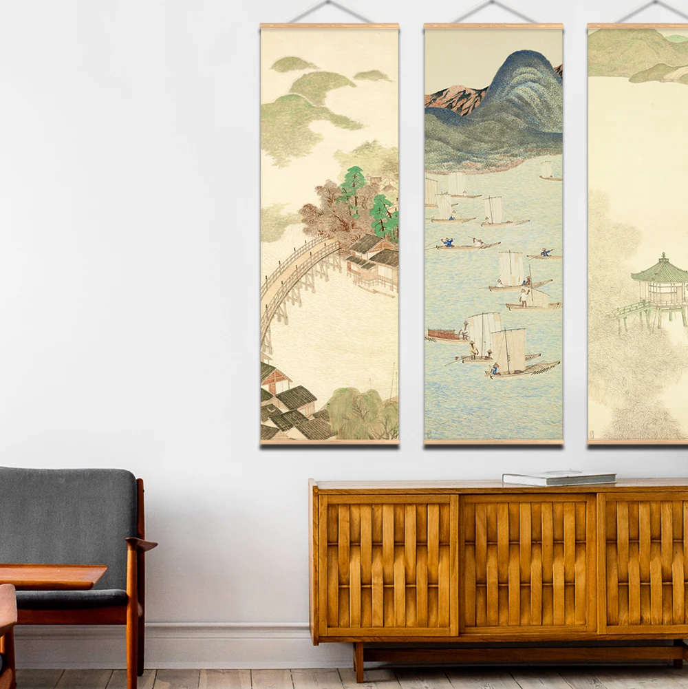 Винтажный пейзаж Ukiyoe, настенный постер на холсте, живопись в виде прокрутки для гостиной, настенный постер