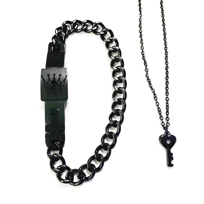 Модный концентрический замок ключ титановая сталь нержавеющая сталь ювелирные изделия браслет ожерелье пара комплектов