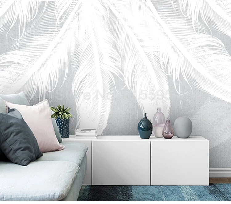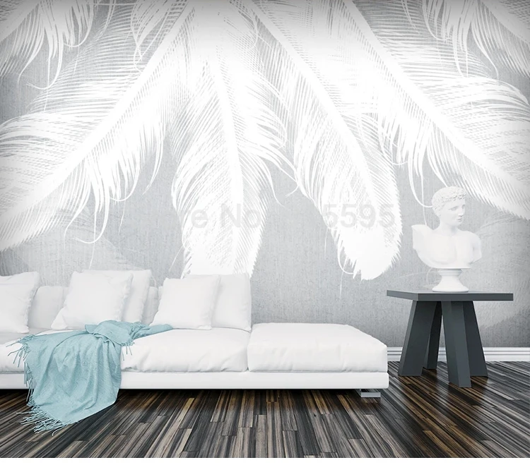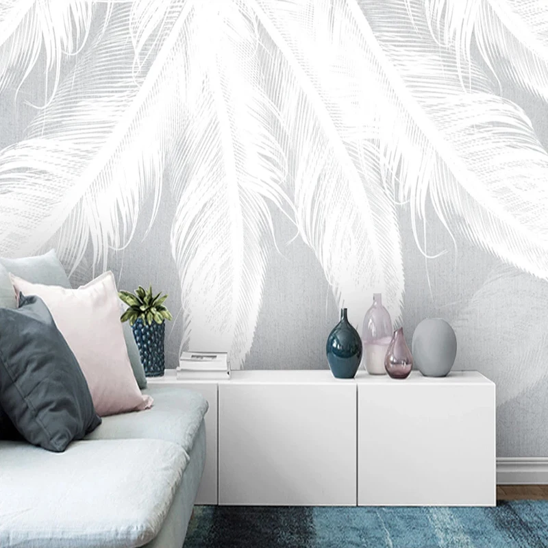 3D фотообои на заказ, абстрактное изображение Белых Перьев, современное искусство, настенная живопись, для гостиной, дивана, спальни, самоклеящиеся обои