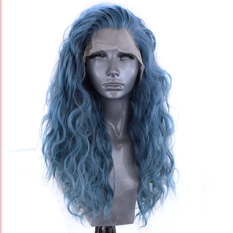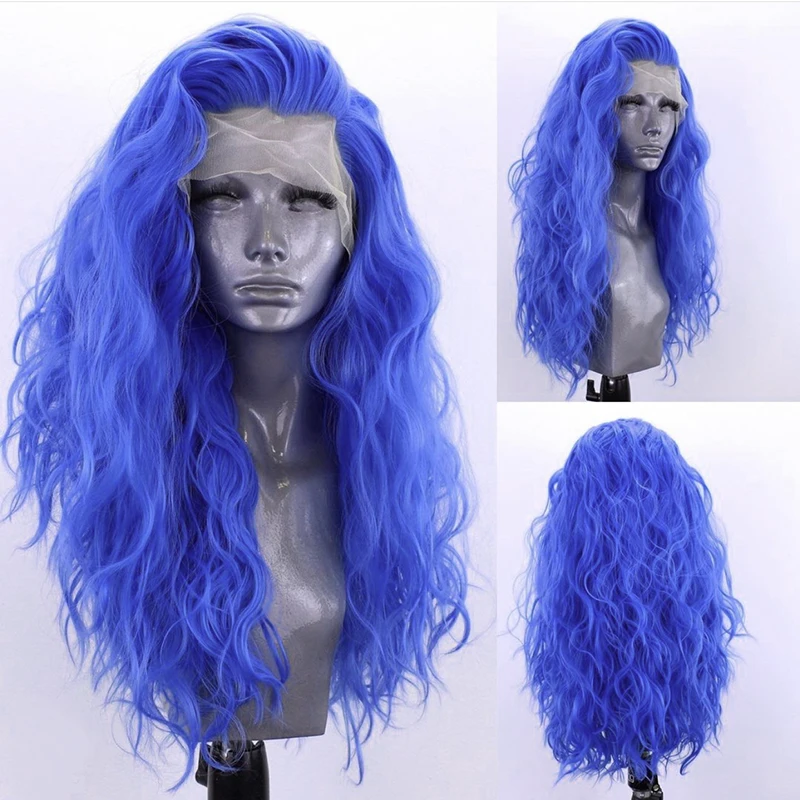 Харизма синий парик синтетический парик фронта шнурка с детскими волосами высокотемпературные волосы волнистые парики для чернокожих женщин косплей парик