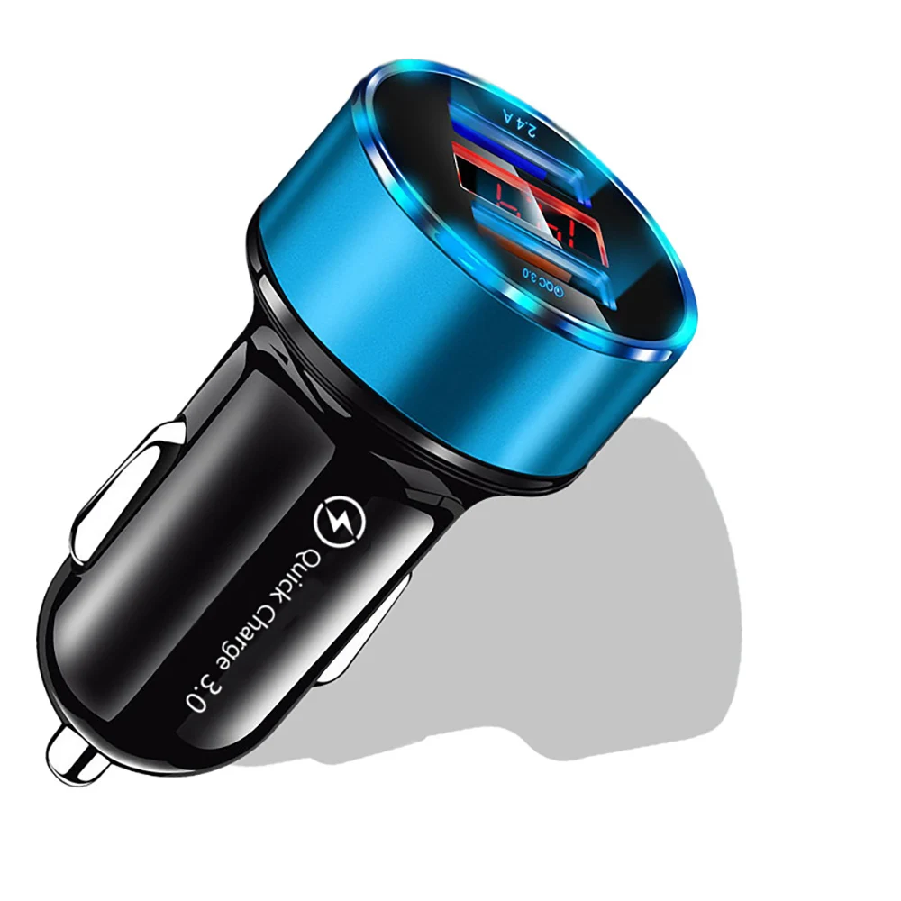 Автомобильное зарядное устройство QC3.0 с двумя USB-портами и цифро...