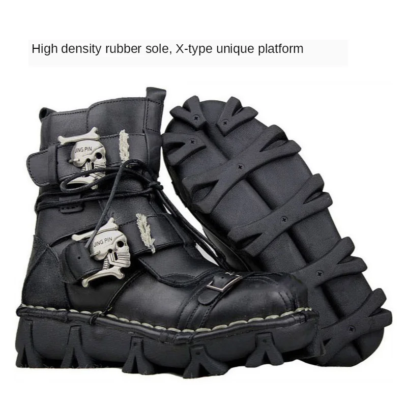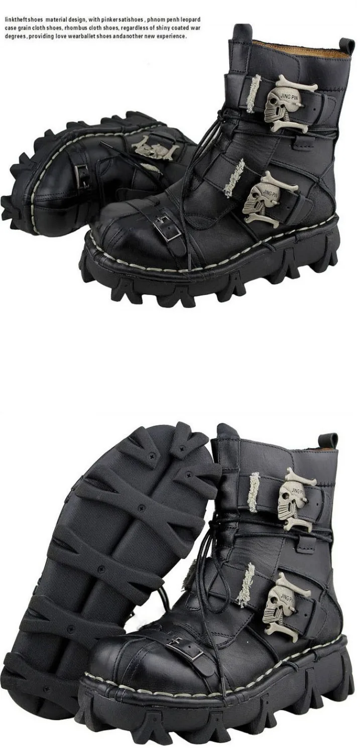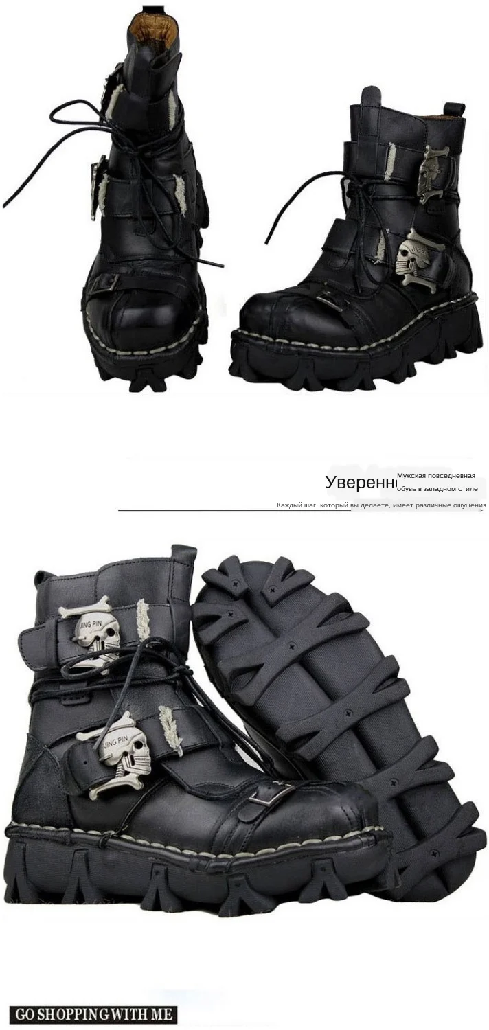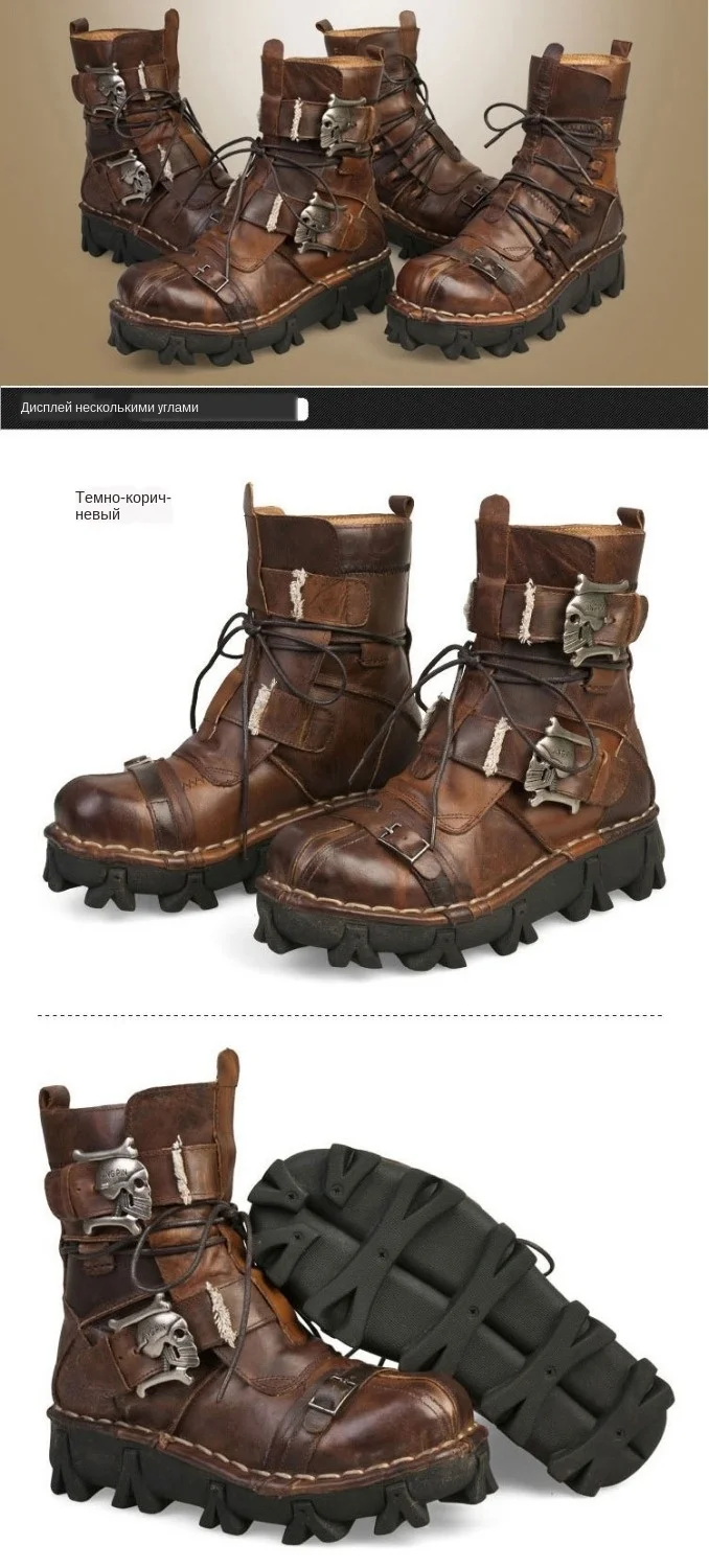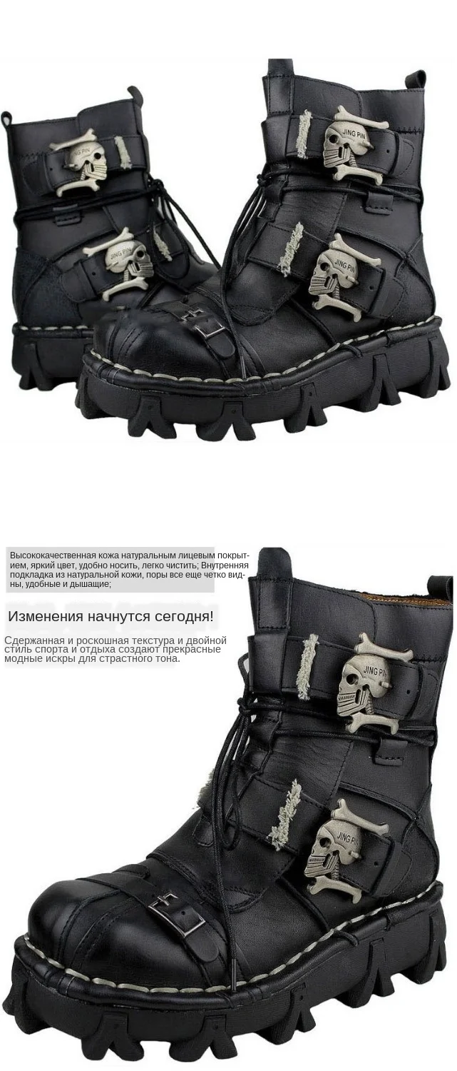 Мужские сапоги из натуральной кожи с черепом в готическом стиле в с...
