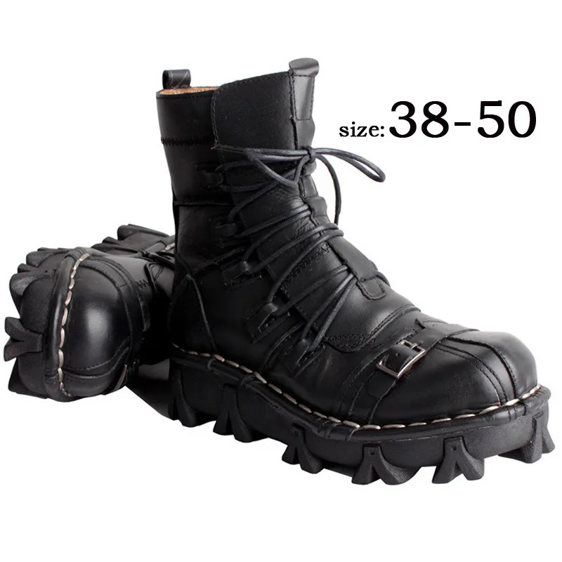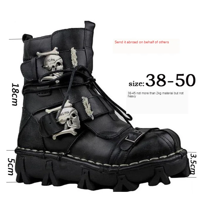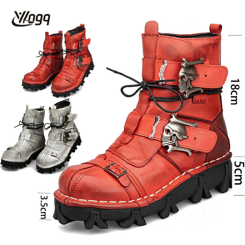 Новинка; Мужские мотоциклетные ботинки из натуральной кожи; Военные ботинки; Ботинки-дезерты; Ботинки в готическом стиле с черепами; Ковбойские ботинки Martin красного цвета в стиле панк; 50