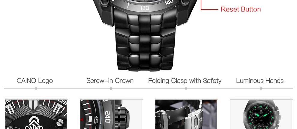 CAINO новые модные спортивные часы Для мужчин Нержавеющаясталь Бизн...