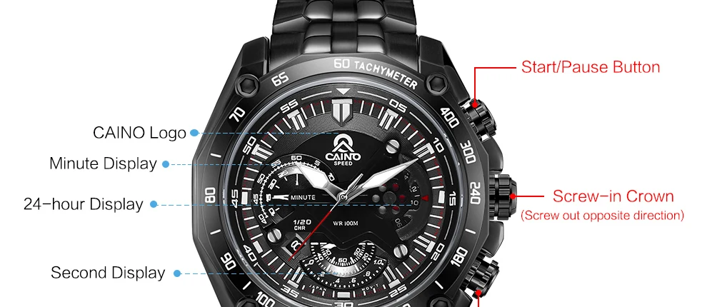 CAINO Для мужчин спортивные часы хронограф Дата 100 м Водонепроница...