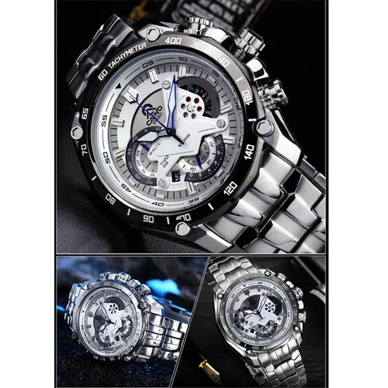 Часы наручные мужские с хронографом, крутые спортивные брендовые Роскошные полностью стальные Кварцевые водонепроницаемые с большим циферблатом