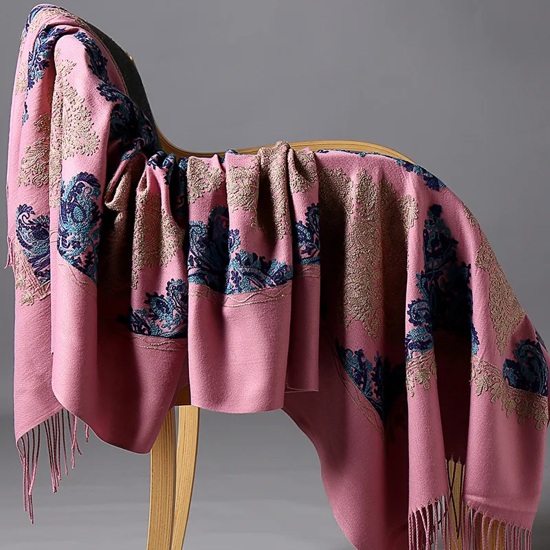 Новинка 2019, зимний теплый однотонный шарф для женщинженский мягкий шерстяной пашминовый шарф с цветочной вышивкой, кашемировый женский кашне, накидки
