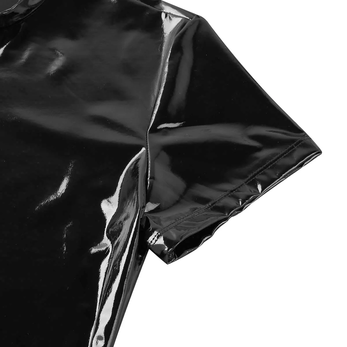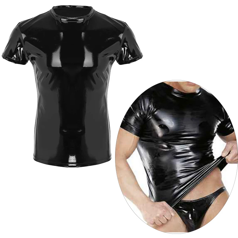 Нижнее белье мужское, латексная рубашка, кожаная майка Wetlook, Клубная одежда, Экзотический костюм для геев, обтягивающая футболка для секса