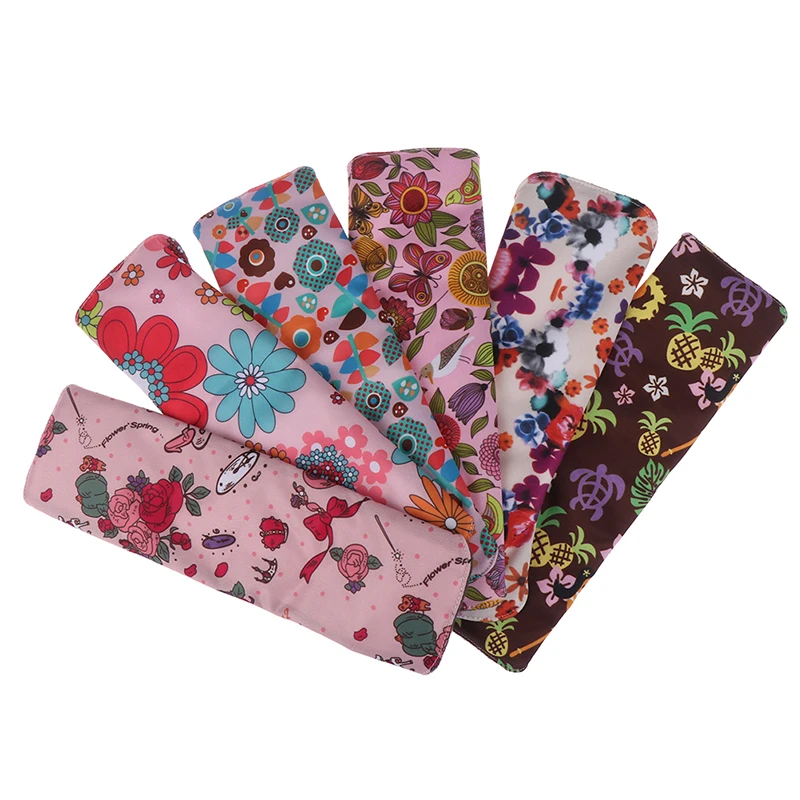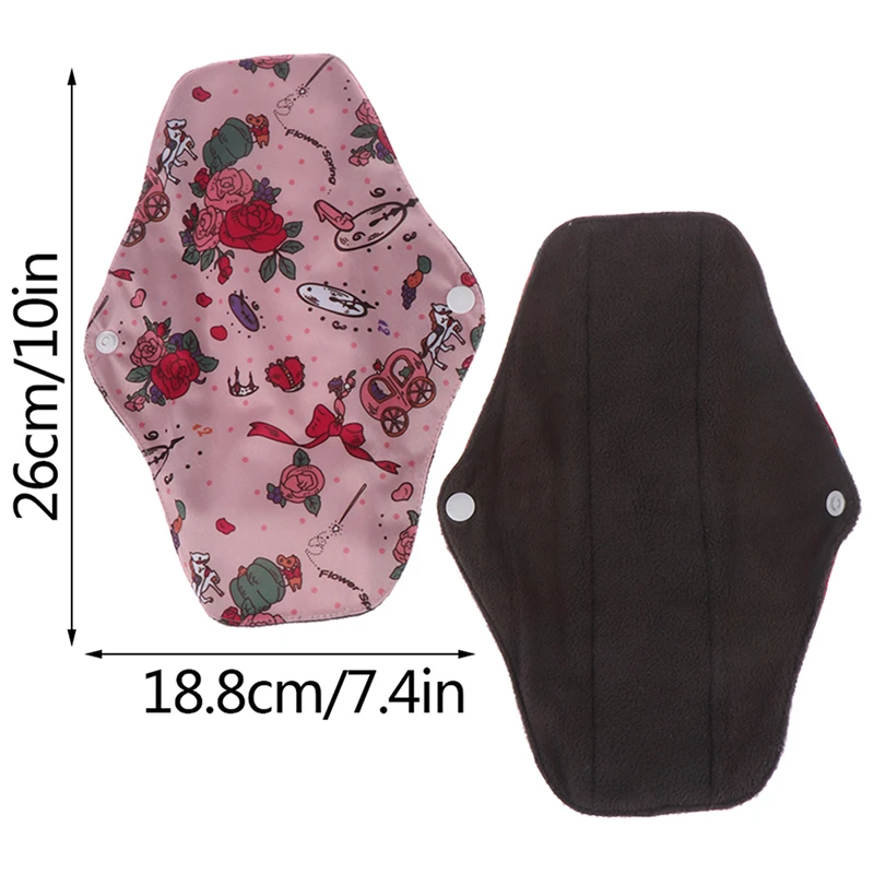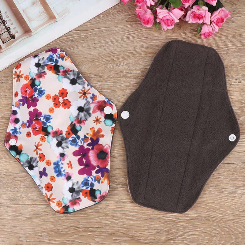 Женские тканевые менструальные прокладки из бамбукового древесного угля с цветочным принтом, многоразовые водонепроницаемые накладки для мам, 2 размера