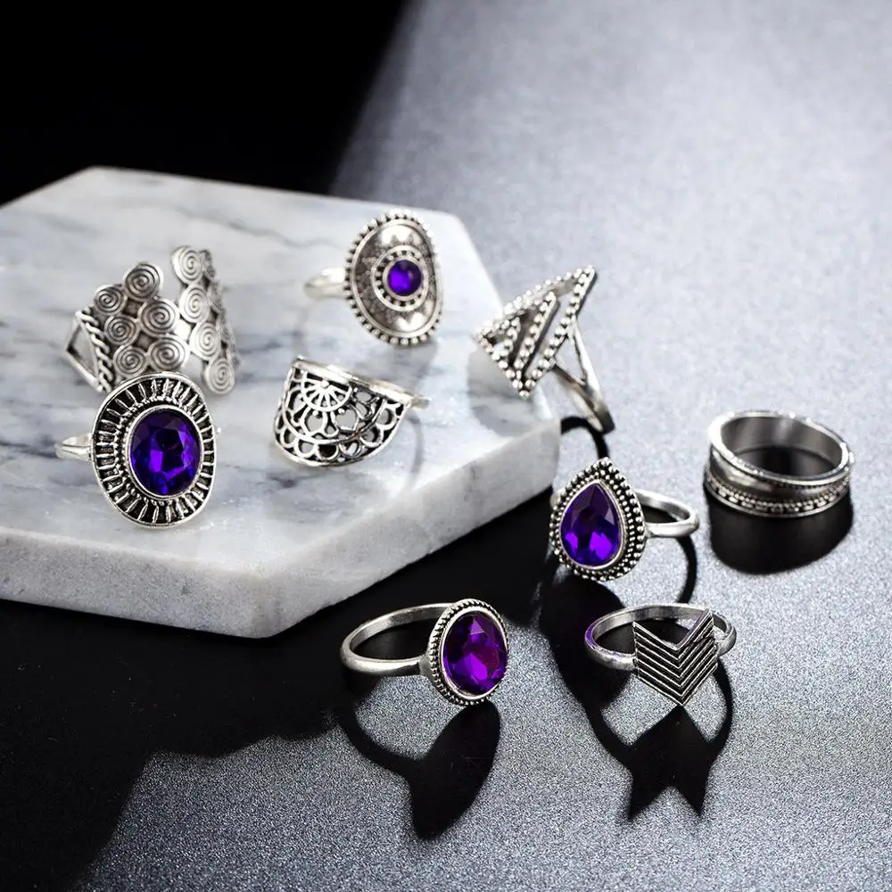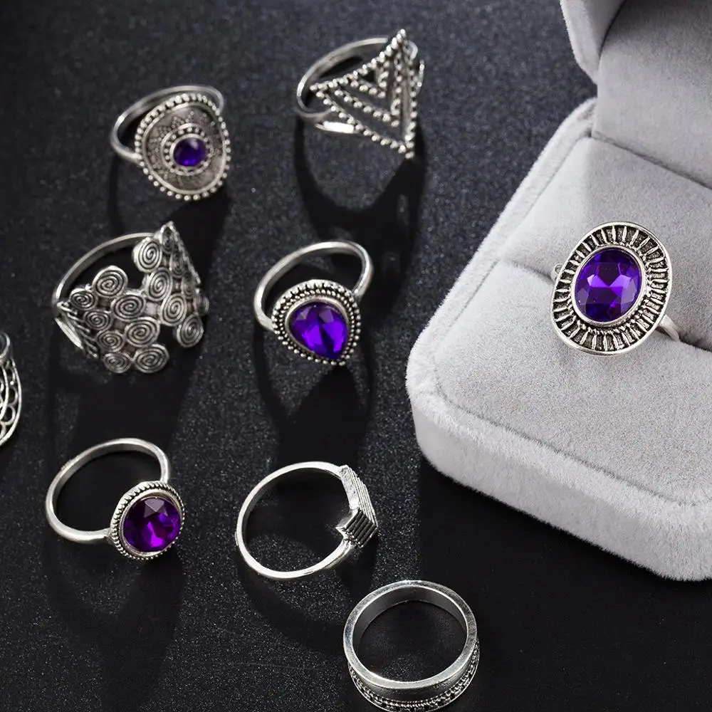 Кольцо женское Винтажное с фиолетовой Стразы, 9 шт.компл., 9 шт., 8261