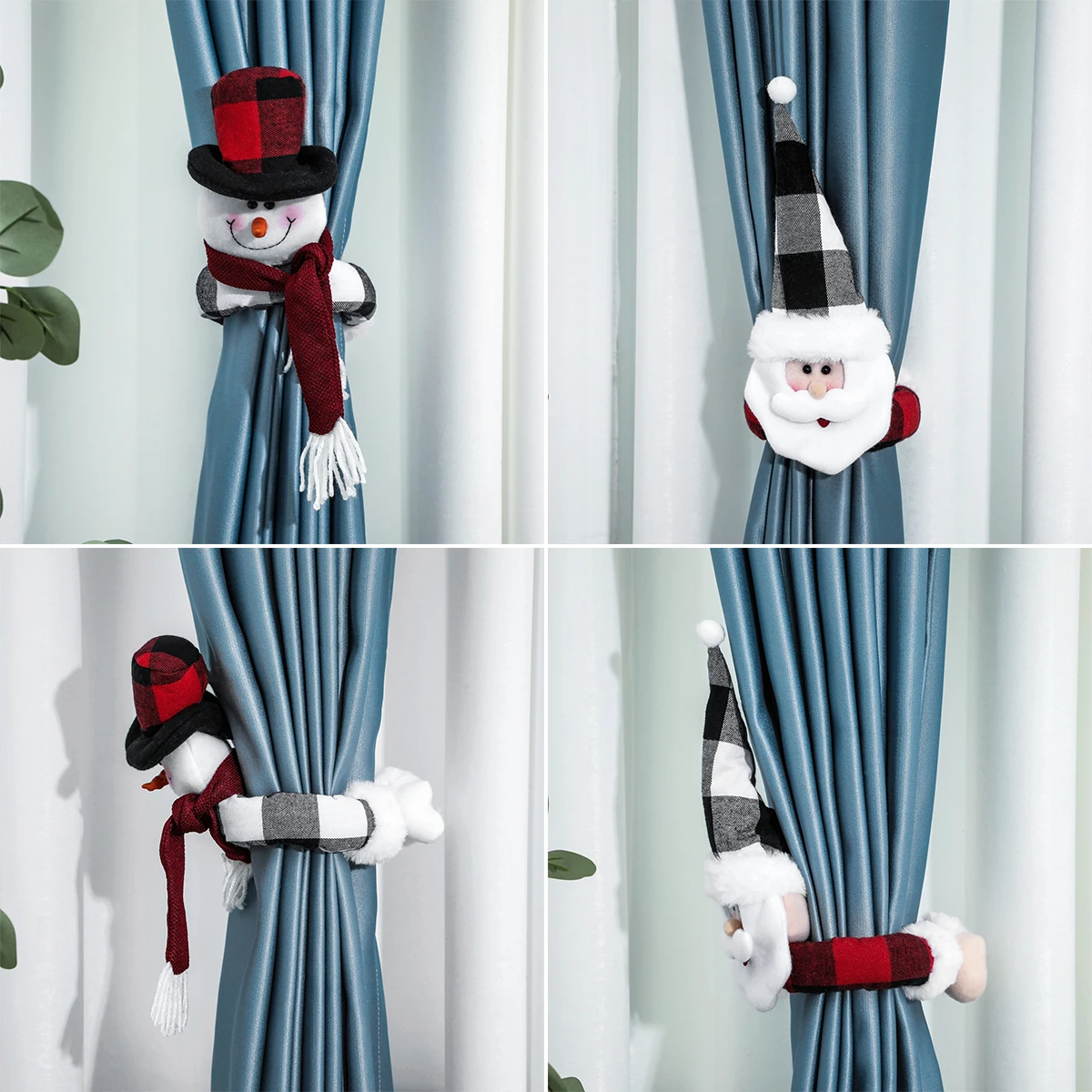 Тканевый Рождественский держатель для штор, Рождественский Декор для украшения дома, новый год 2021, Санта снеговик олень, Рождественский Декор для штор Noel