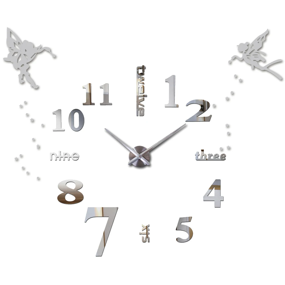 Большие настенные часы, бесшумные акриловые самоклеящиеся цифровые 3d-часы сделай сам, наклейка с ангельскими буквами, большие часы для домашнего декора