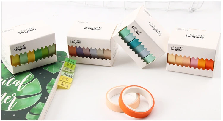 6 шт.компл. многоцветная Милая декоративная клейкая лента, однотонн...