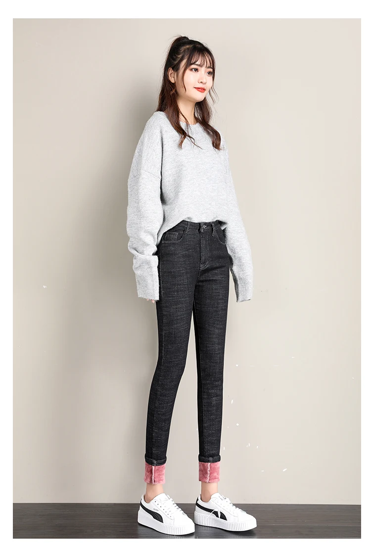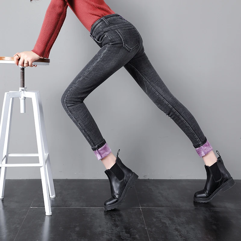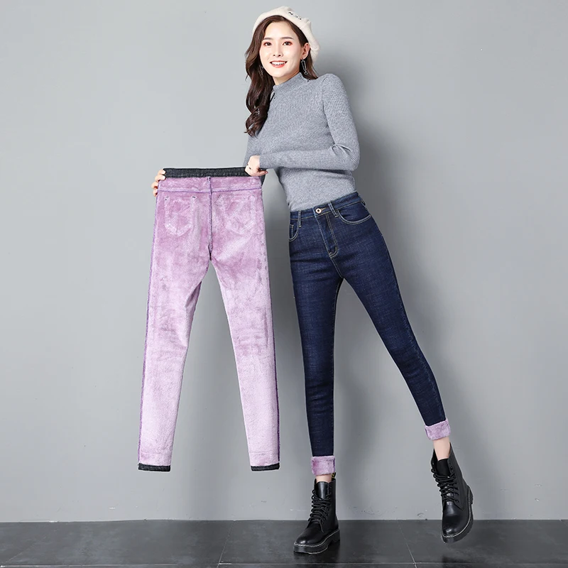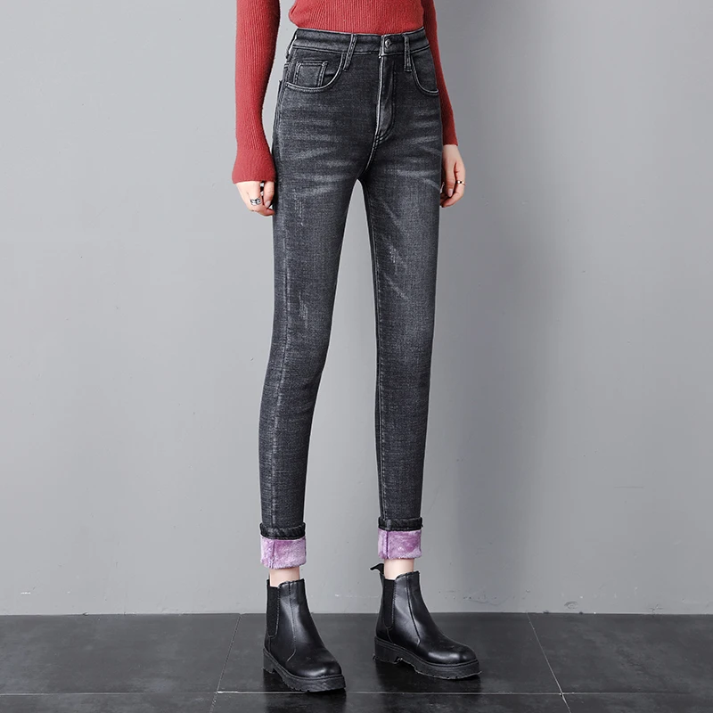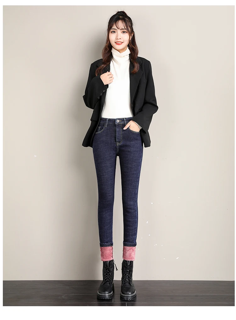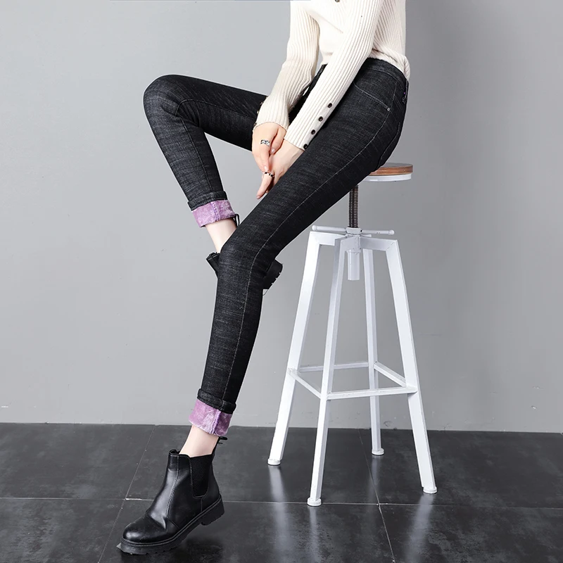 Джинсы-карандаш женские зимние, плотные, с высокой талией, на флисе
