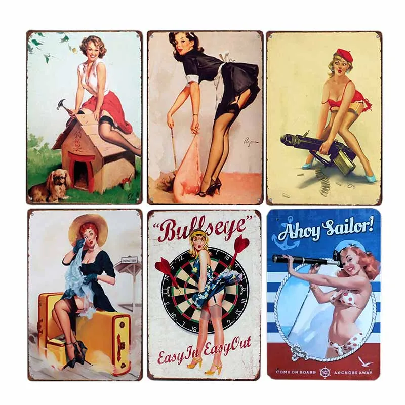 Постер Pinup в стиле ретро, металлическая жестяная вывеска, украшение для кафе, паба, ретро настенная тарелка, декоративный домашний декор 20x30 см