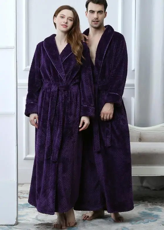 Ночная рубашка осень и зима новинка юката Дамская пара талии длинные толстые банные халаты фланелевый халат теплая Мужская Ночная рубашка халат домашний