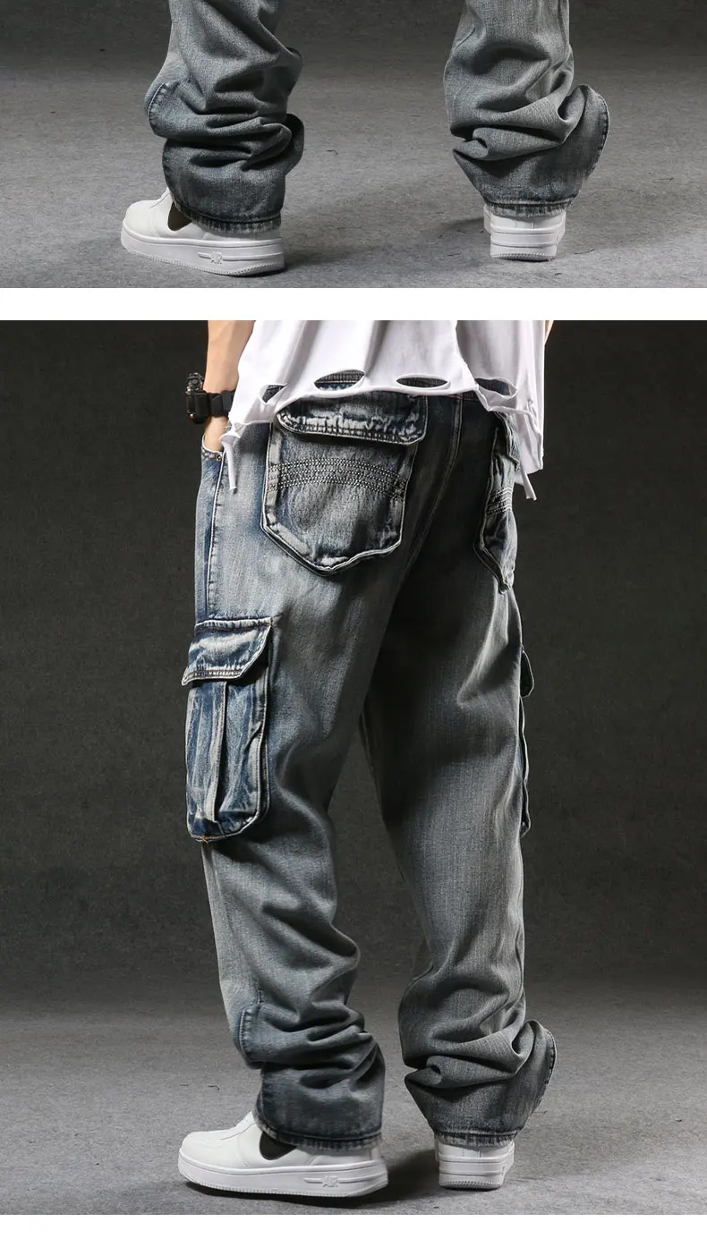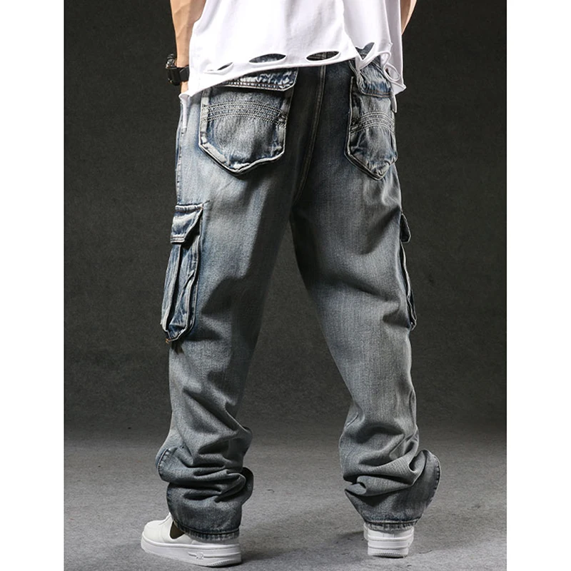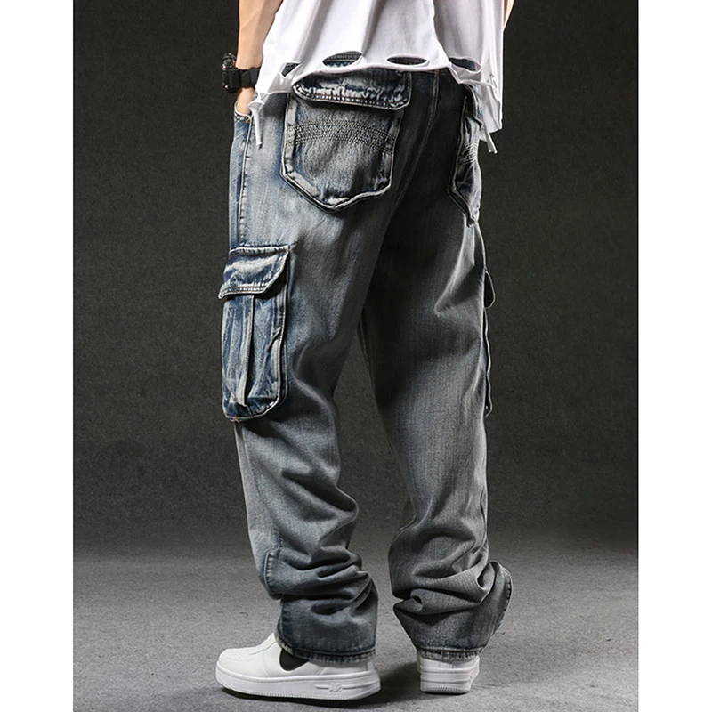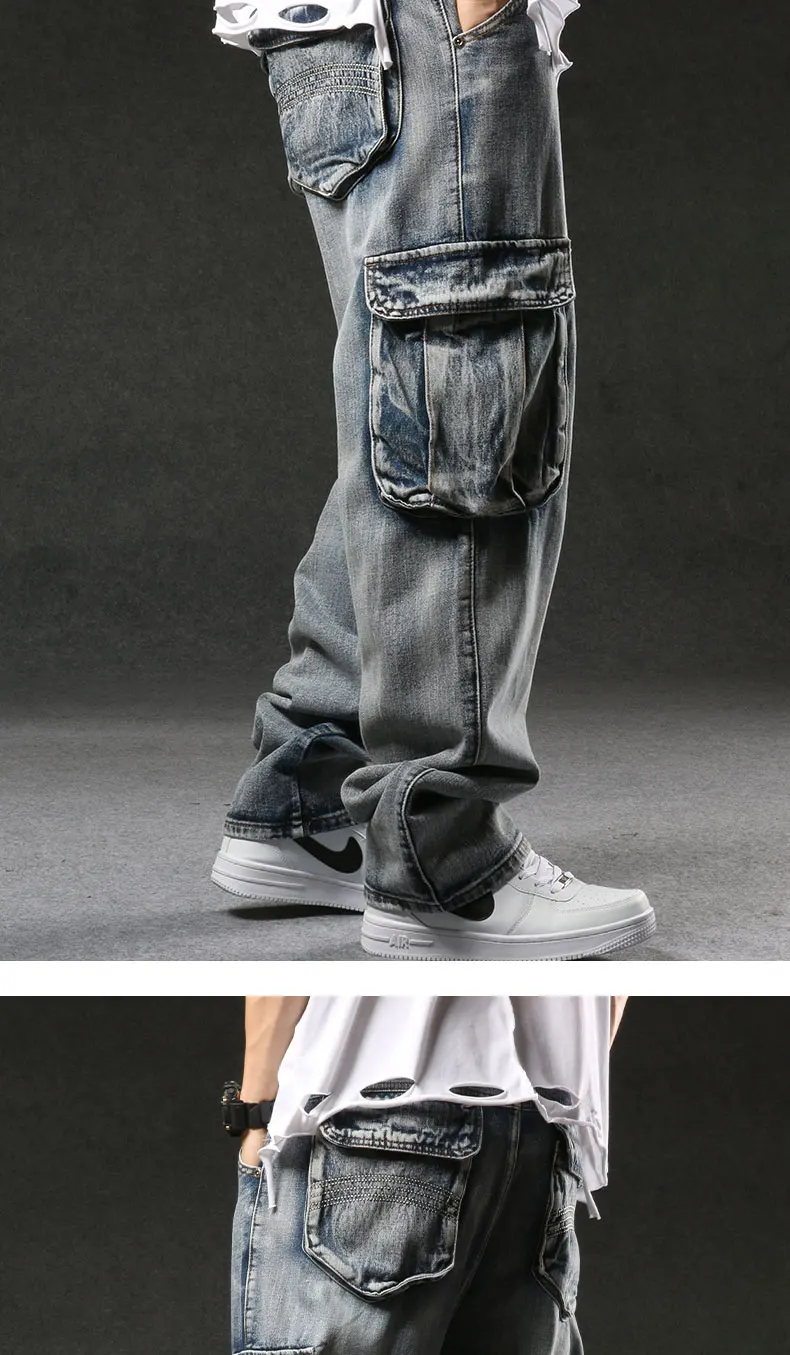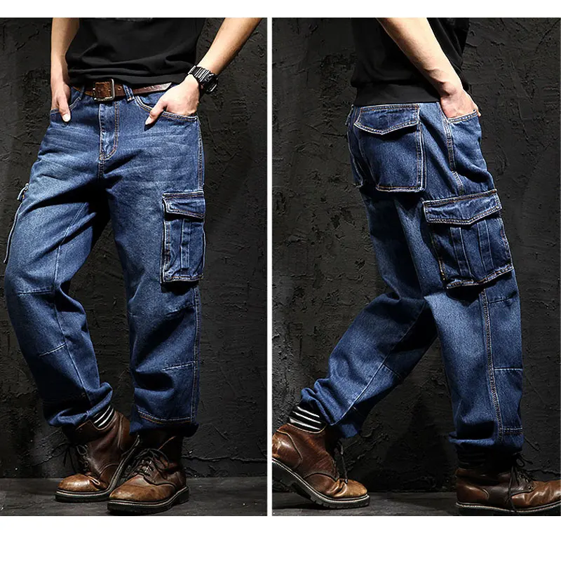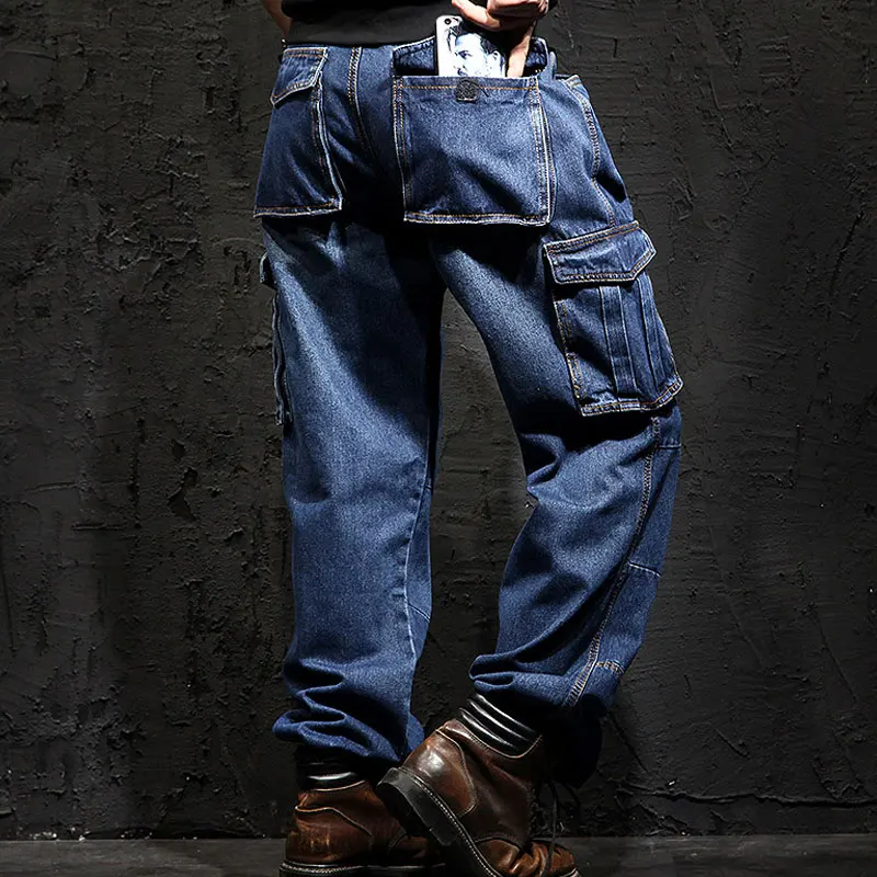 Брюки-карго Idopy мужские, армейские джинсовые, большие размеры 29-46, свободные прямые джинсы