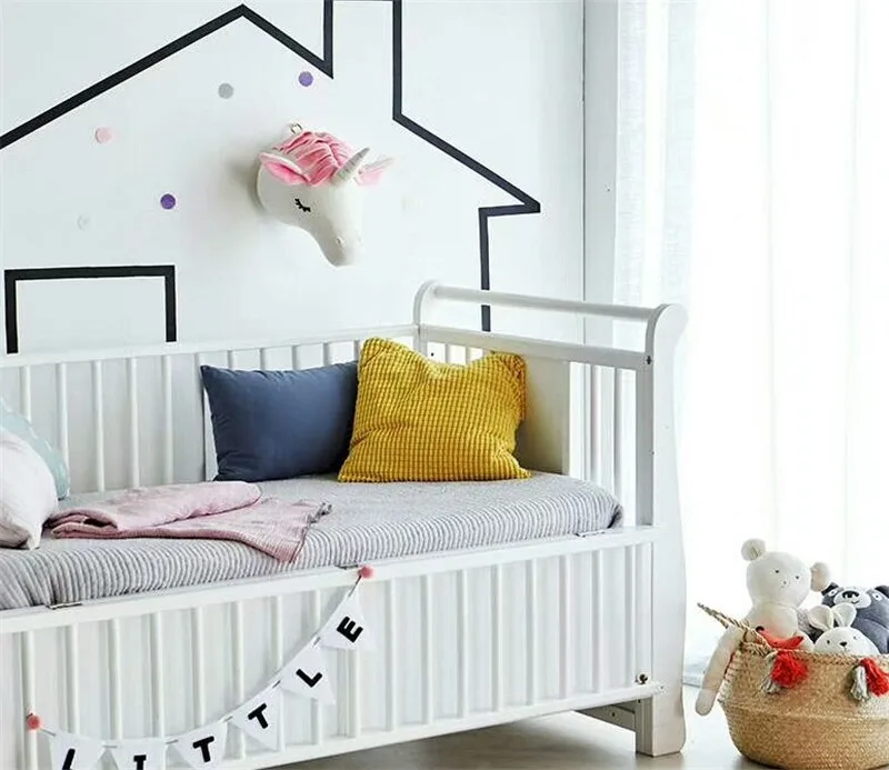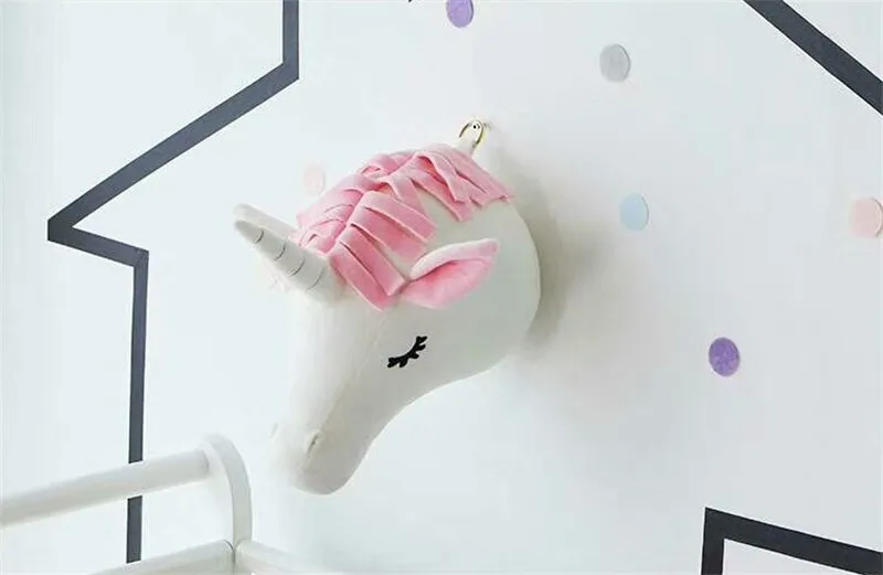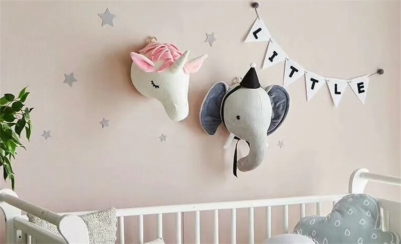 Детская комната плюшевые игрушки 3D Животные головы украшения Слон Олень Единорог Настенный декор для маленьких девочек Детская комната украшения