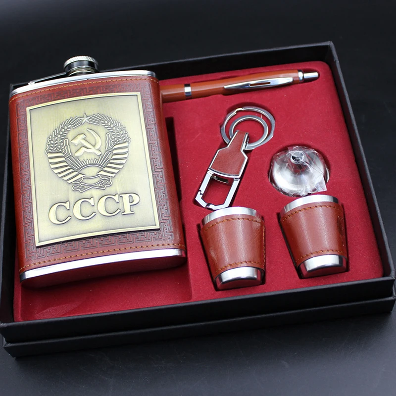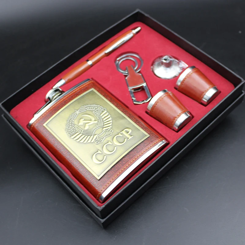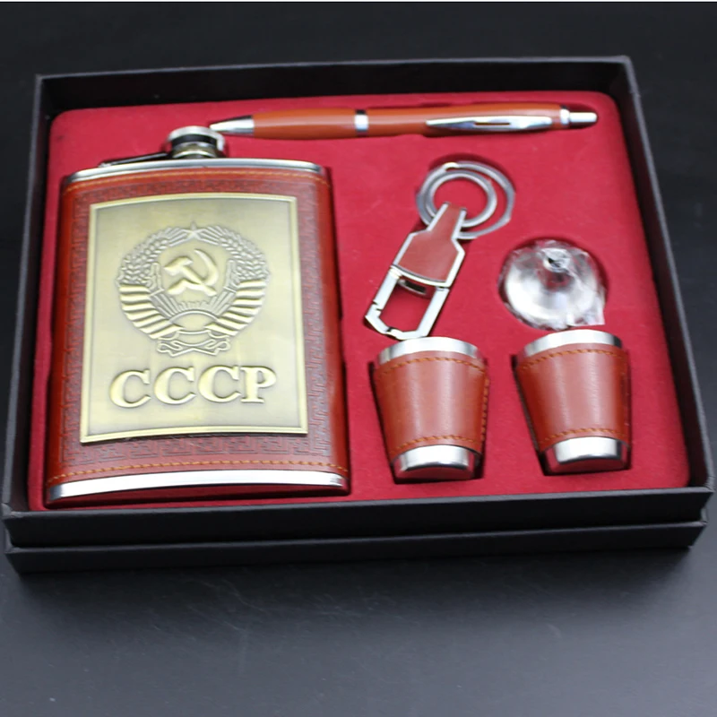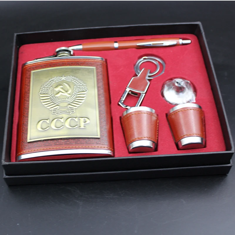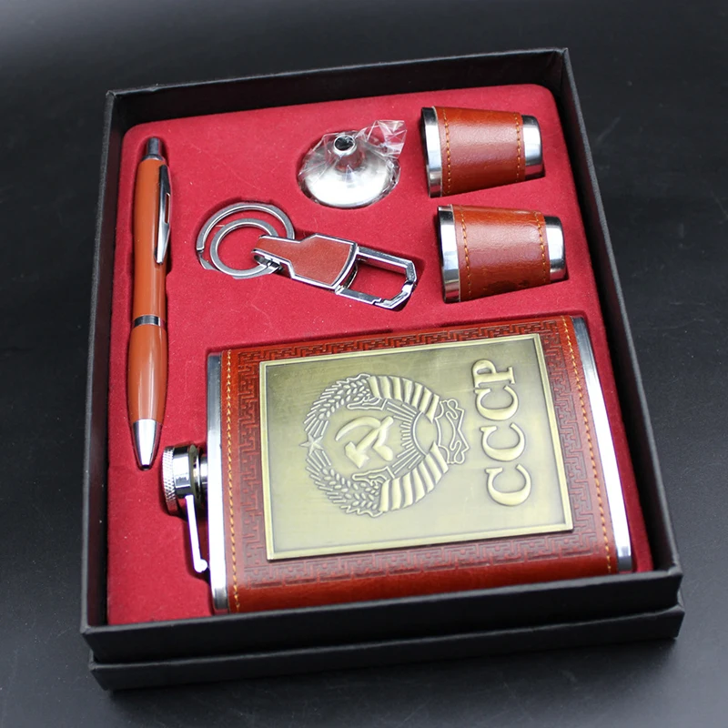 Фляжка, подарочный набор, 8 унций, с воронкой, винные чашки, ручка, кольцо для ключей, виски, кувшин, cccp, нержавеющая сталь, спиртовая фляжка, искусственная кожа, мужские подарки