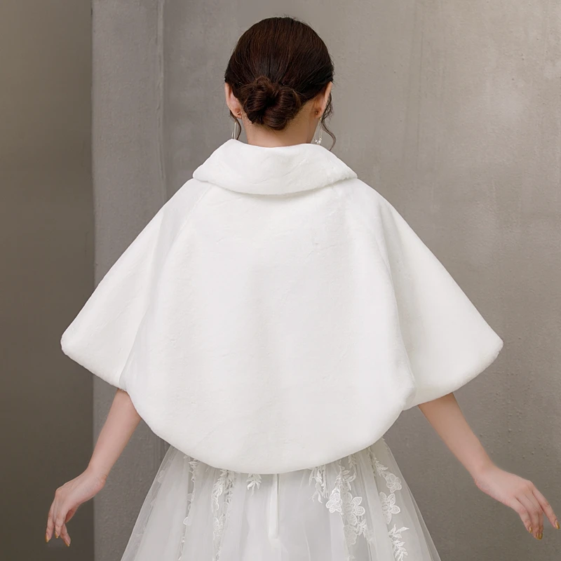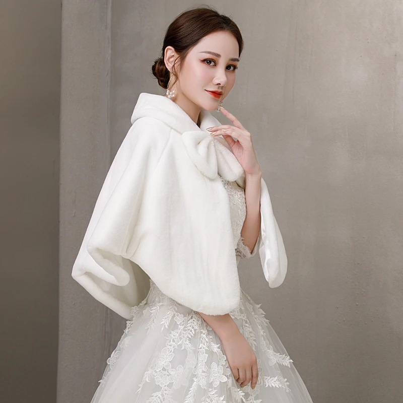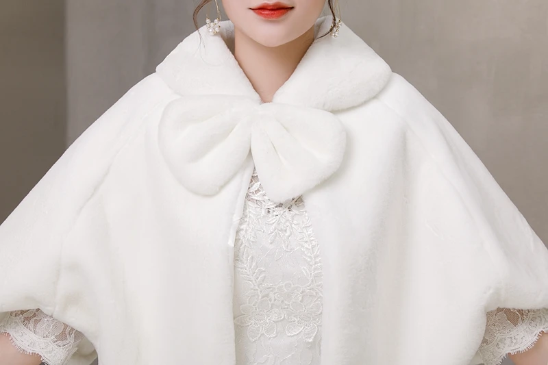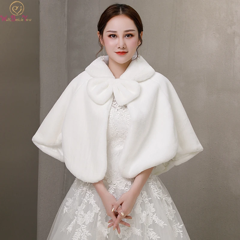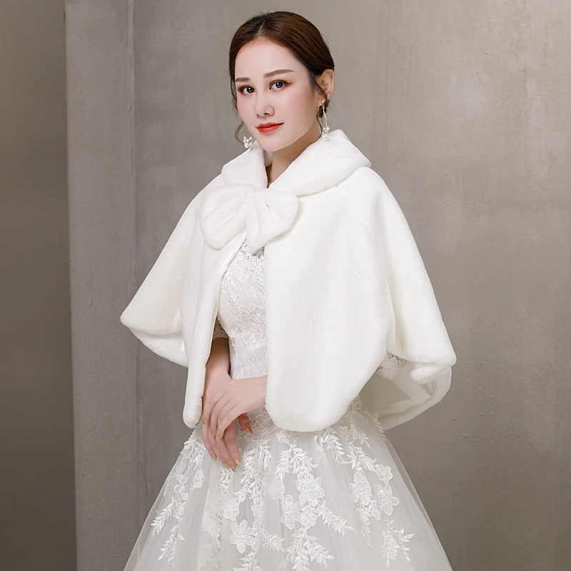 Женская меховая накидка цвета слоновой кости, свадебная накидка с бантом, новинка 2021, официальное платье, свадебная верхняя одежда, свадебные накидки, осенне-зимние куртки, накидки