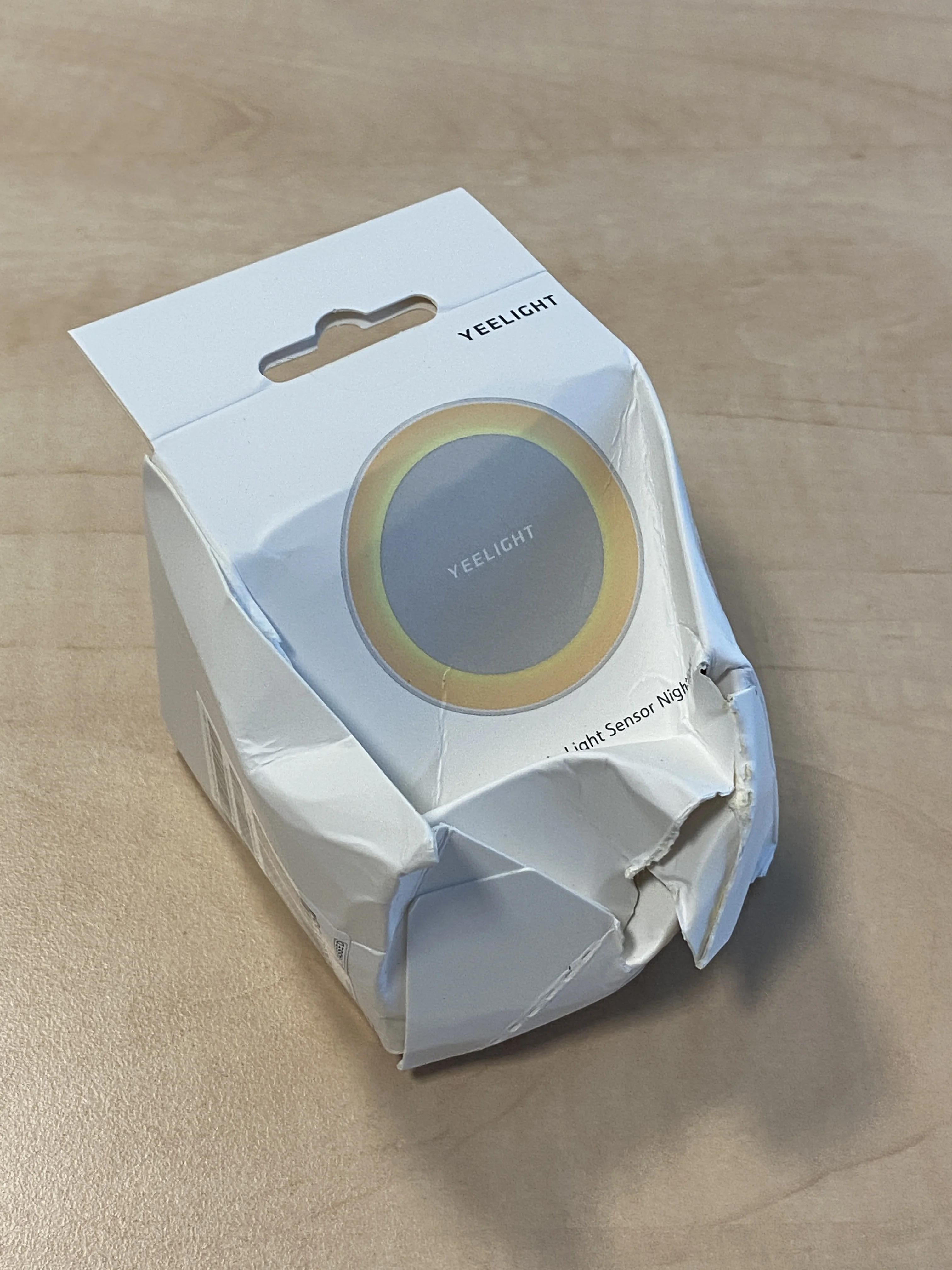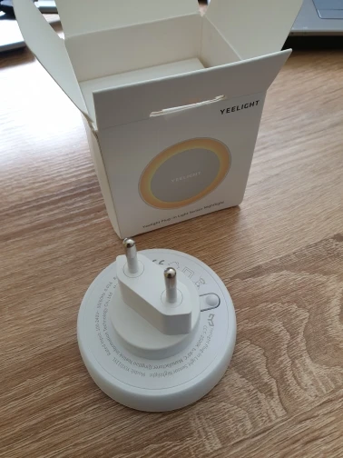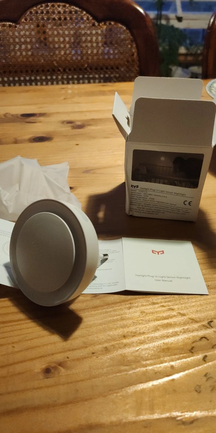 Коробка измялась, но агрегат работает. Включается в темноте. Выключается на свету. Как регулировать яркость пока не нашел. Наверное никак. Сверху есть кнопка отключения. Штука полезная, чтобы по ночам гости стены не сшибали по пути в санузел.