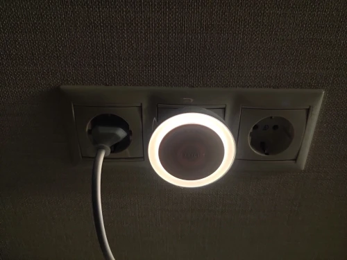 Продукт был отлично упакован и закрыт, и он идеально подходит под описание, в моем случае, с европейской связью. Пластик качественный, он не очень большой, и в моем случае, я положил его в двойной вилке, он позволяет использовать второй свободный разъем. Что касается освещения, идеально. Датчик освещает, как только он не обнаруживает свет в комнате, и освещает достаточно мощности, чтобы видеть ночью. Рекомендуется.