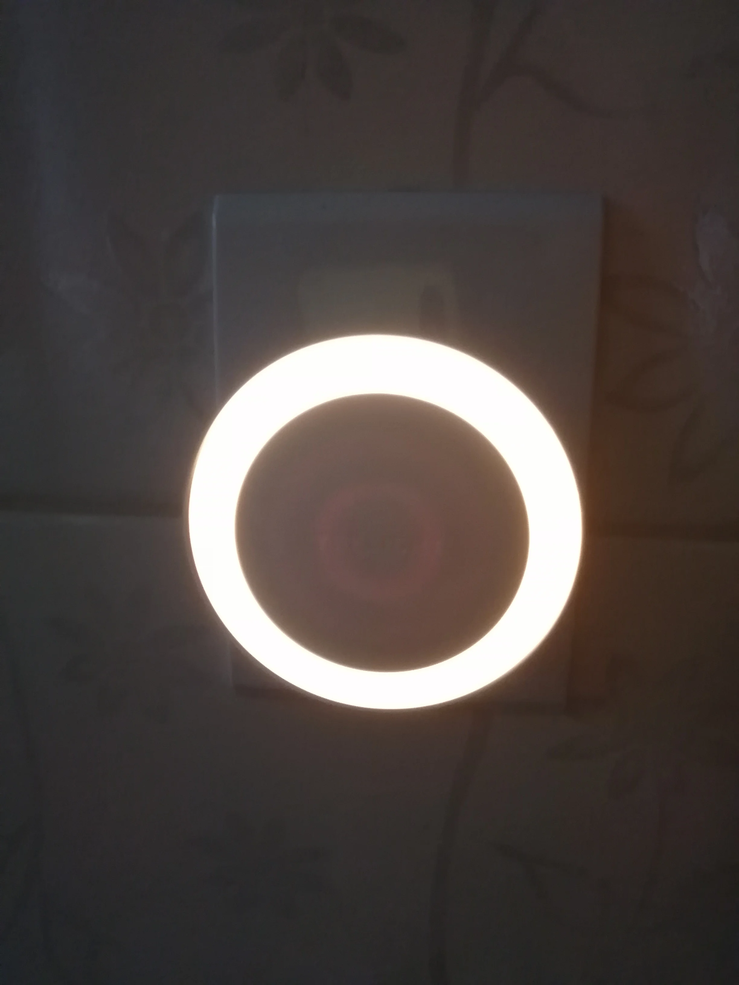 Очень приятный теплый свет. Он загорается достаточно, чтобы ходить в зале, но не будет мешать вашему сну, пока он находится в спальне. Супер устройство! Также он имеет Темный датчик (загорается, когда становится темно) и нажмите на датчик, вы можете выключить его.