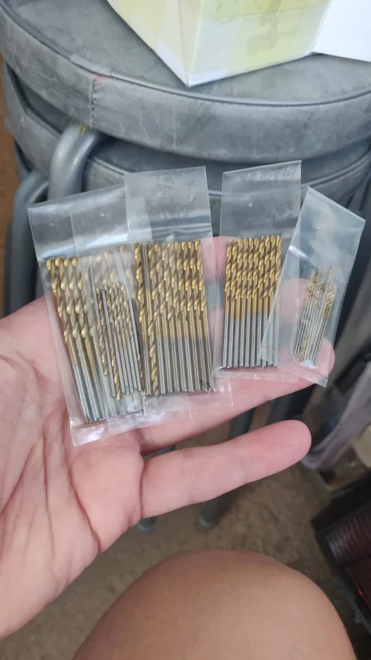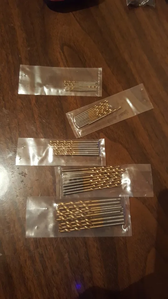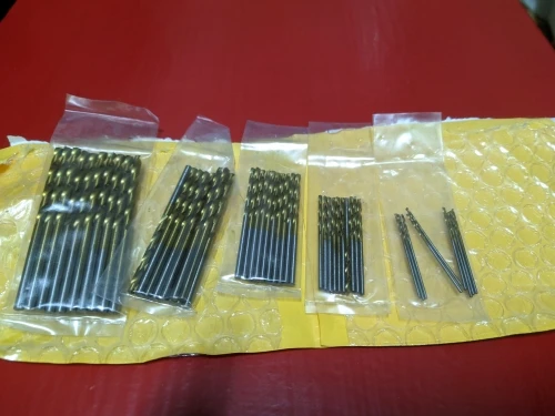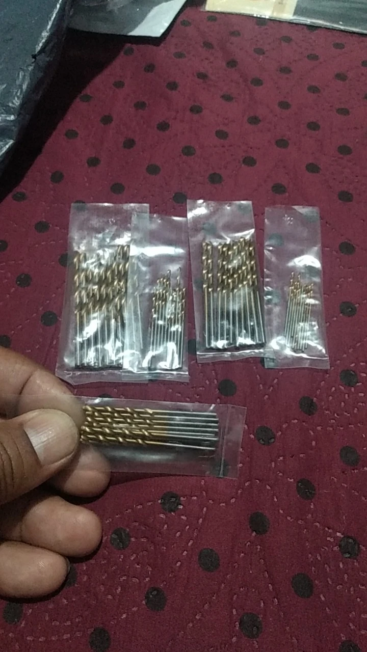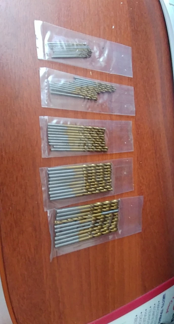 Мелкие, тонкие, хз сколько они выдержат, или сдохнут от прикосновения, взял на прозапас, а так соответствует фото, количество верное, на чемодан не смотрите, не идёт он в комплекте, сверла просто в пакетике, фоткать лень, да и нет смысла. без рекомендаций, решайте сами нужны ли они вам