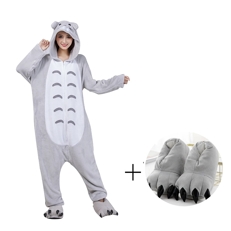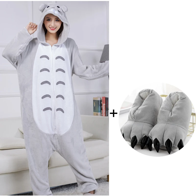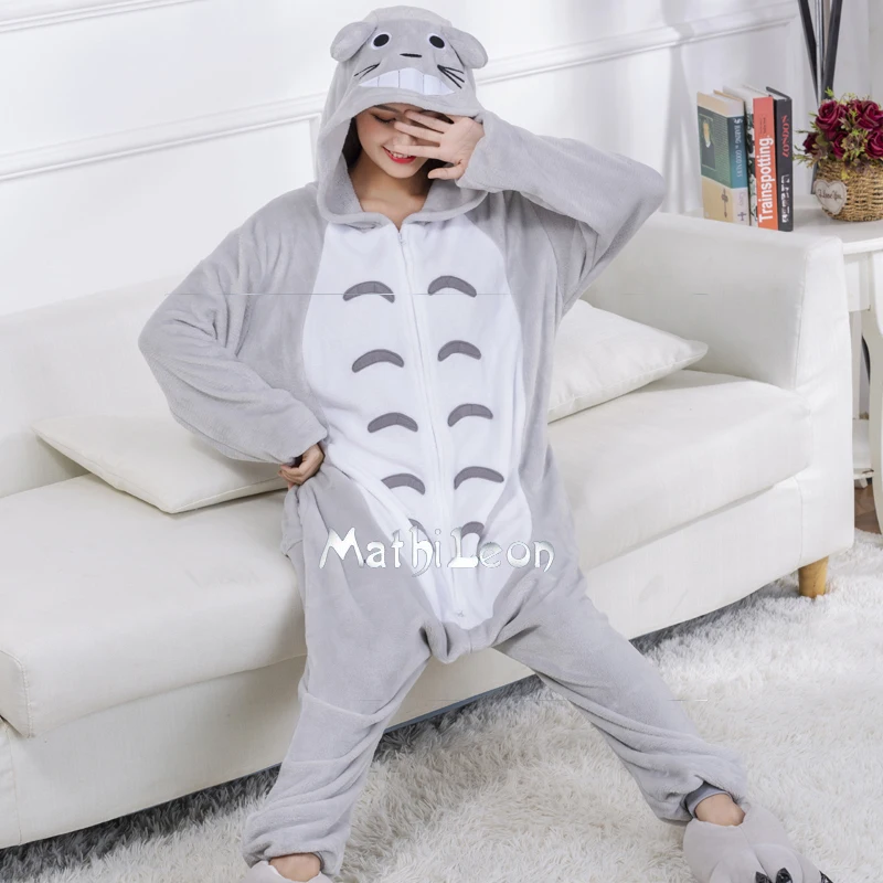 Женские пижамы Тоторо кигуруми Мультяшные Комбинезоны для взрослых молния цельные пижамы в виде животных мужские Фланелевые рождественские костюмы для косплея