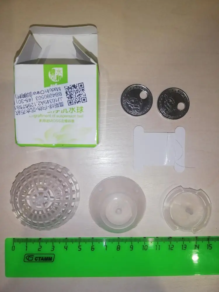 Доставка в Минск - 1,5 месяца. Каждая кочка упакована в коробочку, всё вместе - в пупырке. Качеством довольна. Только при получении разобралась, зачем монетки - они для подвешивания кочки в толще воды - как оказалось - не мой вариант. Но это моя вина, конечно. Красивее, на мой взгляд, кочка на дне. Рекомендую!
