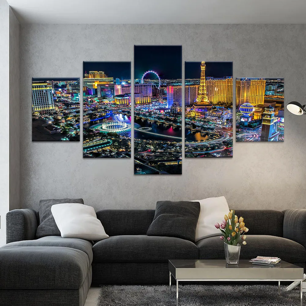 5 панельных картин ночного времени Лас Вегаса, HD печать, Современная Картина на холсте, настенное искусство, модульный плакат, рамка, домашний декор