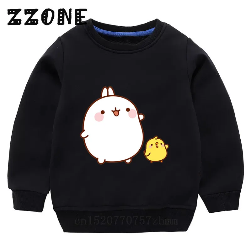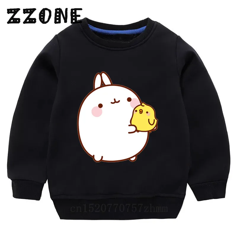 Детские толстовки с капюшоном, детские толстовки с мультяшным кроликом Molang и Piupiu, детский хлопковый пуловер, топы для девочек и мальчиков, осенняя одежда, KYT5217