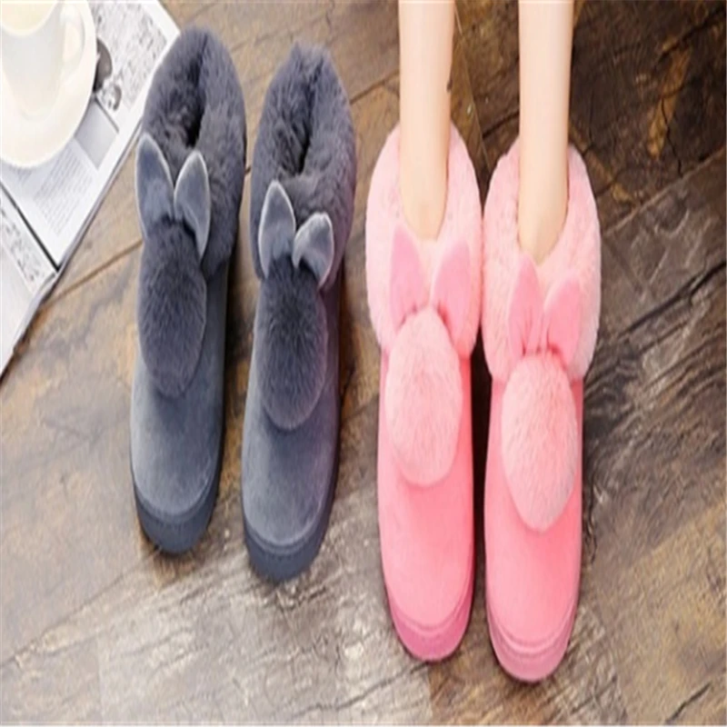Женские меховые тапочки с кроличьими ушками, плюшевые бархатные зимние женские тапочки, домашняя обувь, зимняя теплая Дамская мягкая удобная обувь