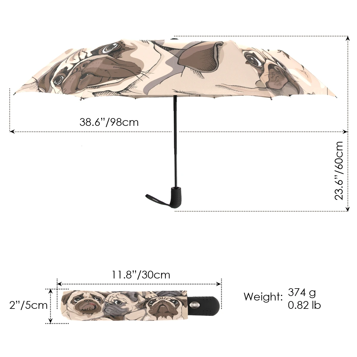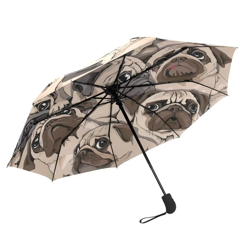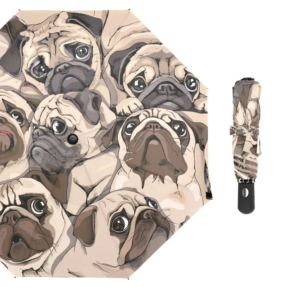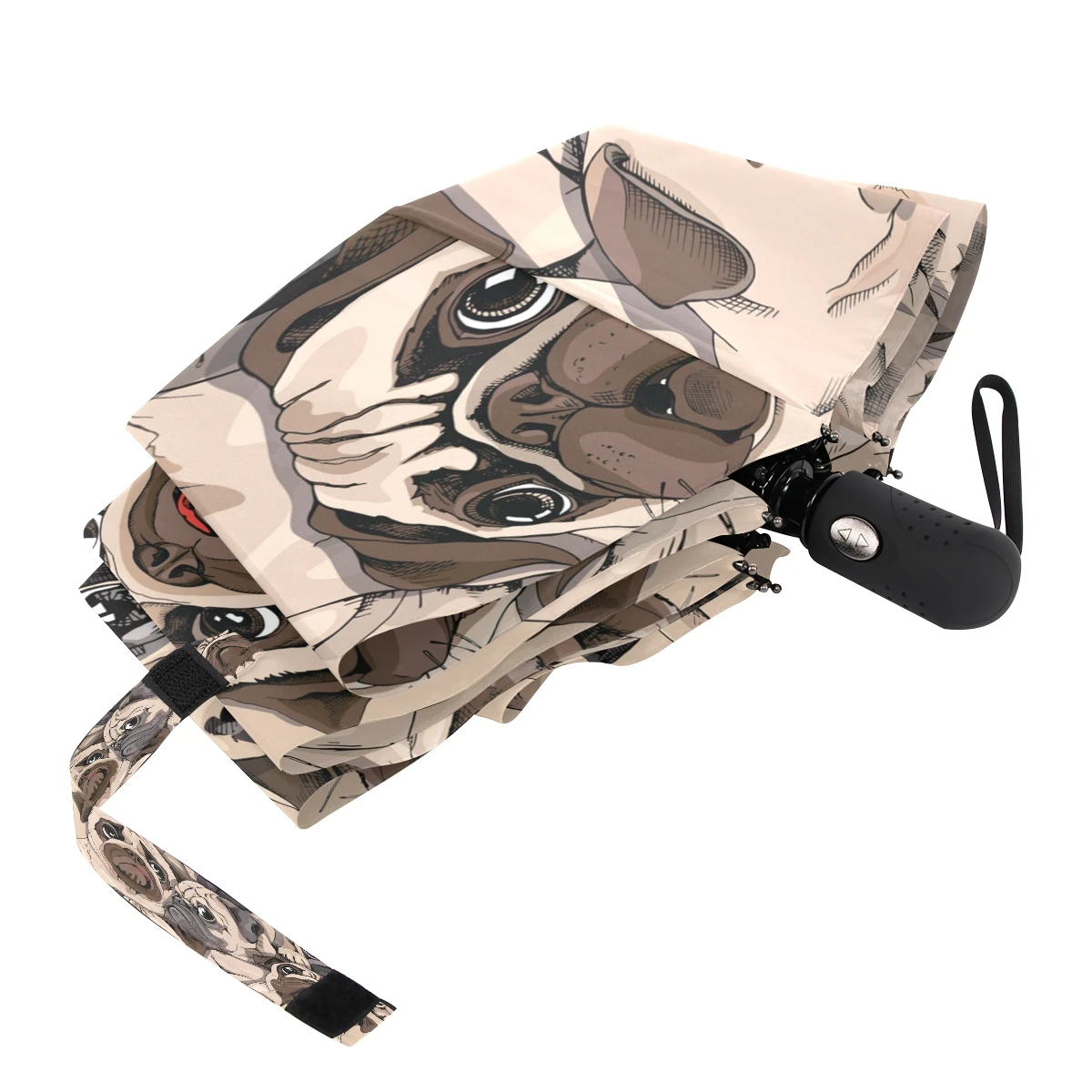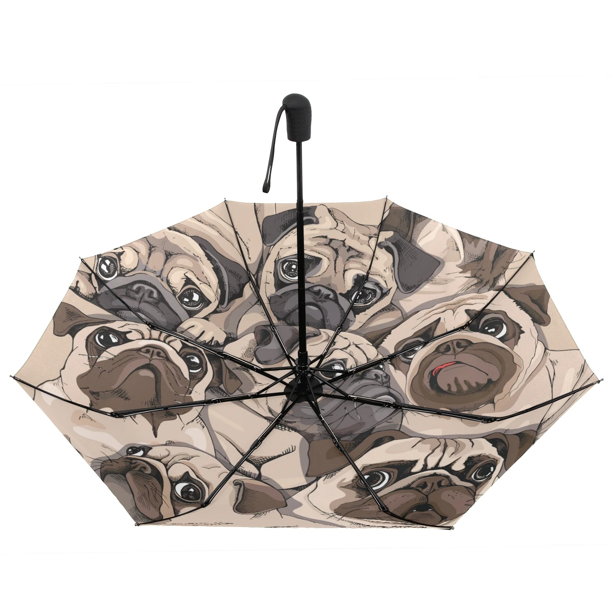 Зонт мужскойженскиймужской, полностью автоматический, забавные мопсы, ветрозащитный, три сложения, защита от дождя и солнца, 8 спиц